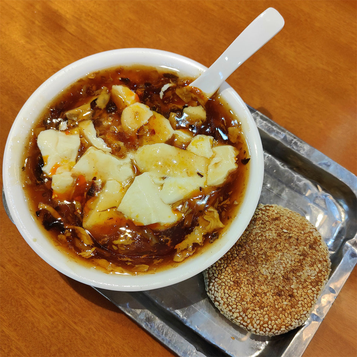 烧饼火烧、麻花麻团、馅饼包子、油饼油条、羊杂汤、豆腐脑、八宝粥等,干稀搭配,花样不少。早上来碗羊杂汤、豆泡汤或者豆腐脑,一个火烧加上煎鸡蛋;或者来碗八宝粥,一个刚出锅的馅饼,再加点免费小咸菜,就着热乎吃下肚,那叫一个舒坦。劳碌惯了的老北京大爷大妈,时不时地偷回懒,上这里解解馋,尝尝正宗的清真小吃。
