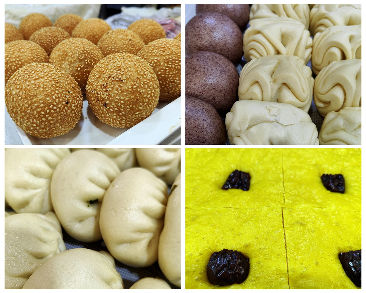赶上中午和晚上,不少在附近居住的居民以及从幼儿园、学校接送孩子的家长也会光顾这里,买点熟食、主食。说起这里的主食,我最爱吃的是他家的牛肉包子和火烧,芝麻酱花卷、小米发糕也是经常要买的主食。最漂亮的主食是七彩窝头。