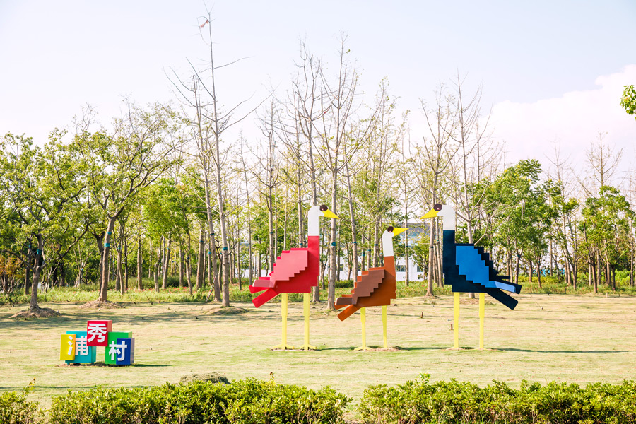 借势庄行郊野·农艺公园建设、美丽乡村建设等,全域推进“田成块、林成网、水成系、路成环、宅成景”的总体格局,原生民宅白墙黑瓦,生态环境水清岸绿,呈现“日出东方照美谷,浦江南岸现绿廊”的美好意境。浦秀村创新打造50亩彩稻图景,提升涵养林公益林品质,成功创建上海市森林乡村。