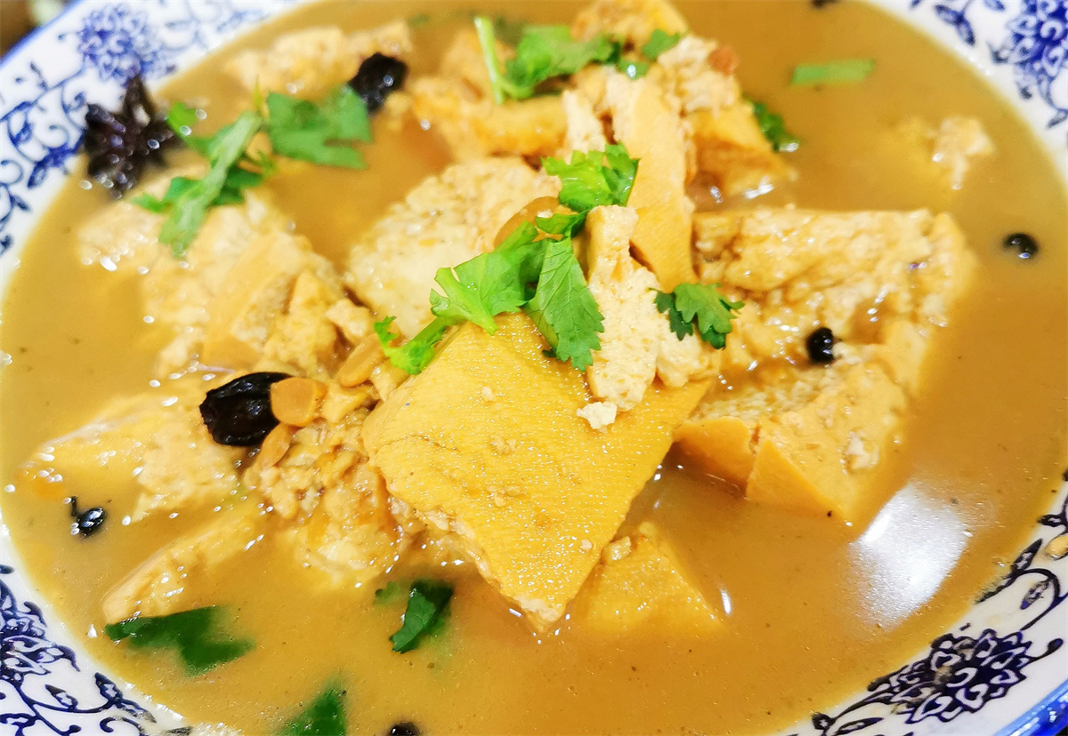 热菜里,小葱炒鸡蛋和老汤豆腐是我的“必点项”。小葱炒鸡蛋看着和家里做的没两样,可入口才知差别——鸡蛋的鲜香格外突出,一口就尝出了“土味”的纯粹;农家老汤豆腐更不用说,嫩滑的口感、浓郁的豆香,让久居城市的我瞬间找回了食材本真的味道。