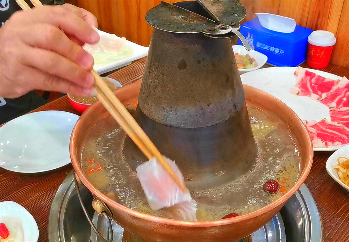 “宝财诚”老店传承北京炭火铜锅涮肉,以匠心品质和地道风味吸引食客,展现老北京饮食文化。