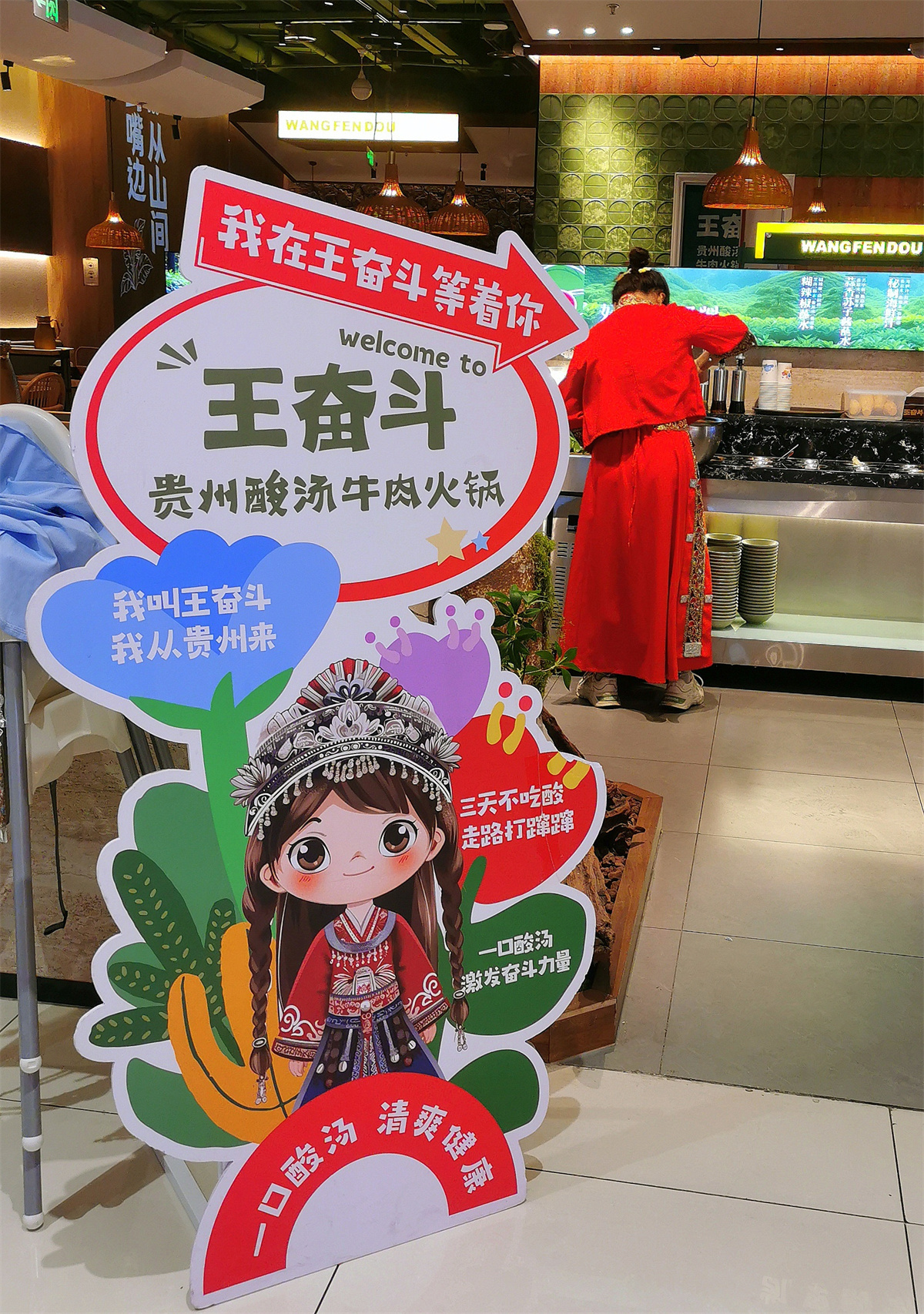锚点逛房山龙湖天街,刚踏进商厦大门,“王奋斗贵州酸汤牛肉火锅”的广告便撞入眼帘。刹那间,八年前在贵州黔东南州西江千户苗寨古街的记忆汹涌而来——苗年节时的热闹场景仍历历在目,身着绚丽民族服装的苗家兄弟姐妹载歌载舞,几百米长的长桌宴上,酸汤牛肉火锅正冒着滚烫的热气。
