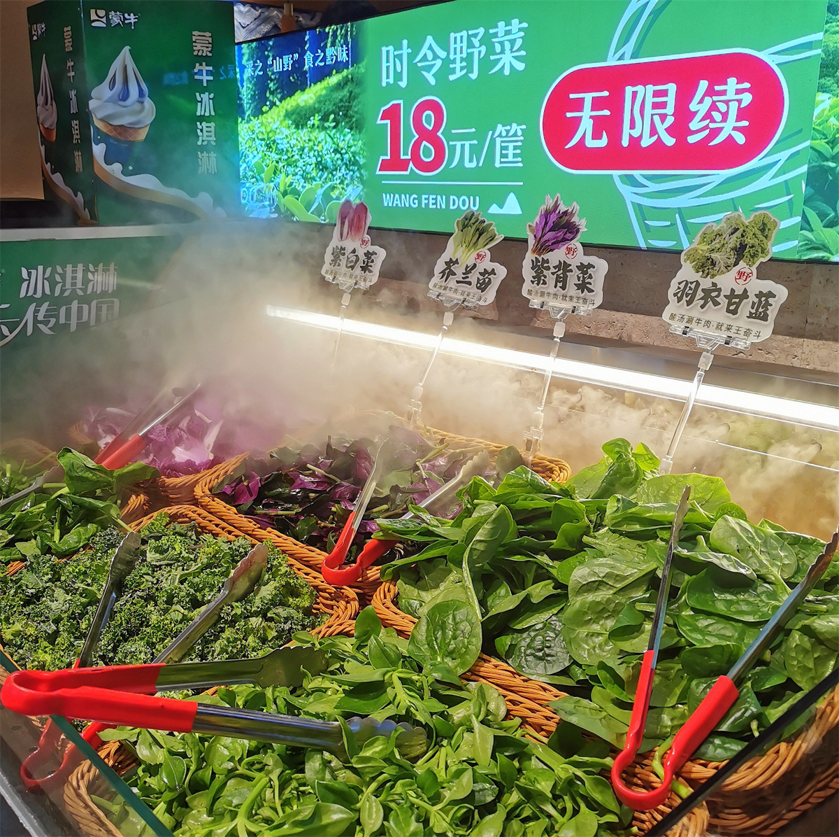 最让人惊喜的是涮菜里的时令野菜——“采之山野,食之黔味”的野菜可无限续加。羽衣甘蓝、紫背菜、芥兰苗、田七、木耳菜、紫白菜……这些来自贵州的野菜兼具“药食同源”的属性,新鲜又健康,吃起来满是自然的清香。小吃也没让人失望。清镇玉米粑粑撕开外层的玉米叶,田园的清香扑鼻而来,咬一口,香、甜、糯软在舌尖化开;炸石屏包浆豆腐蘸上香气十足的辣椒面,一口下去豆香四溢。两道小吃都带着浓郁的地方特色,让人越吃越爱。