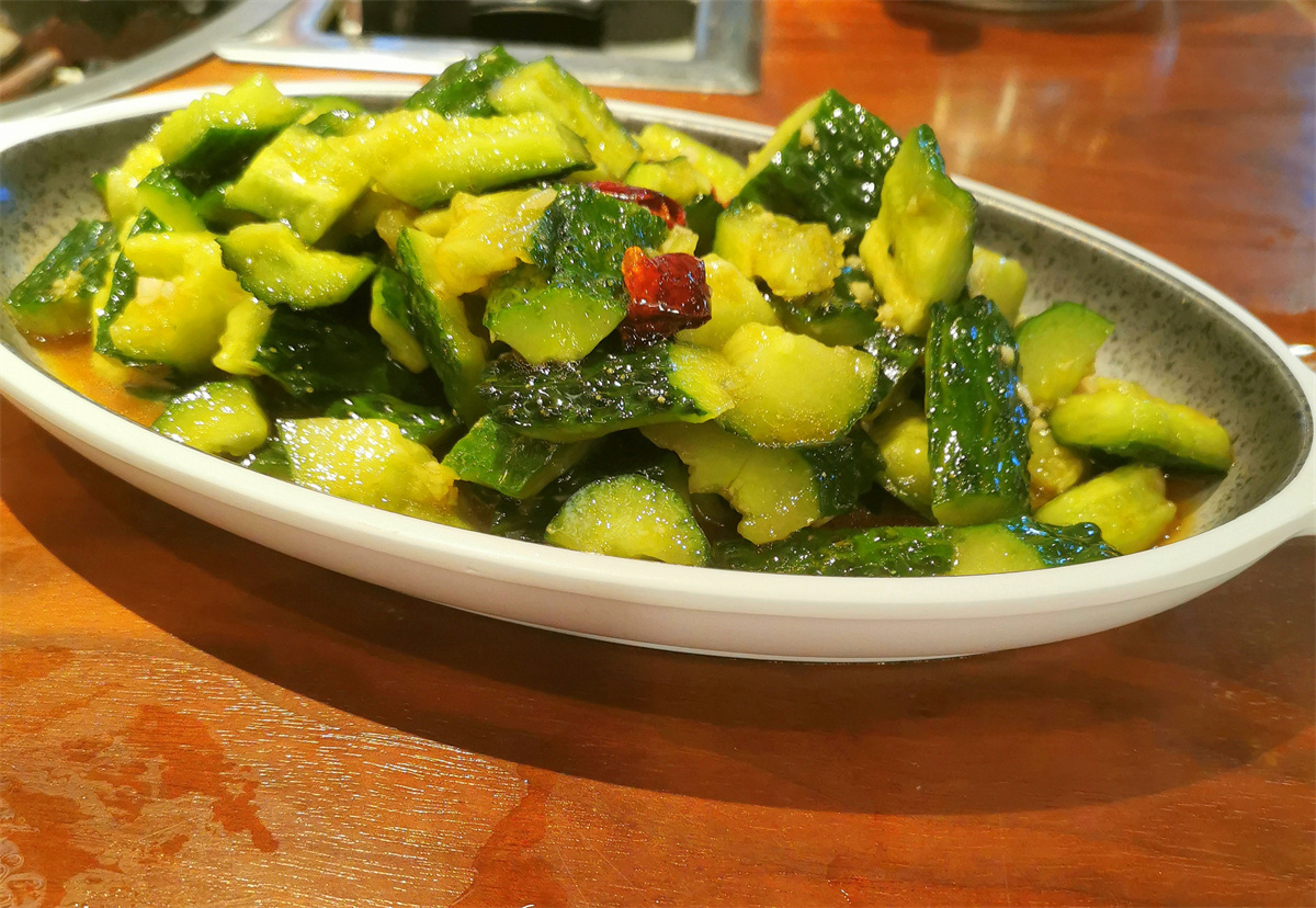 这道肥肠锅鲜、香、辣十足,就着米饭堪称绝配,不知不觉就能吃下满满一碗。要是实在辣得受不了,夹几口清爽的拌黄瓜,再喝几口酸梅汤,凉丝丝的口感瞬间缓解辣味,原来这些小菜与饮品,竟是这道招牌菜的最佳搭档。