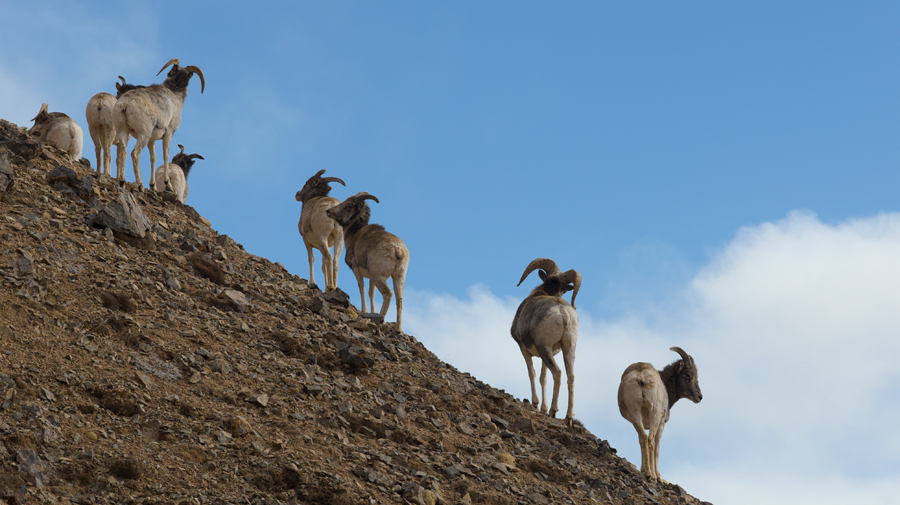 原标题:国家二级保护野生动物盘羊成群现身冬日都兰县境内