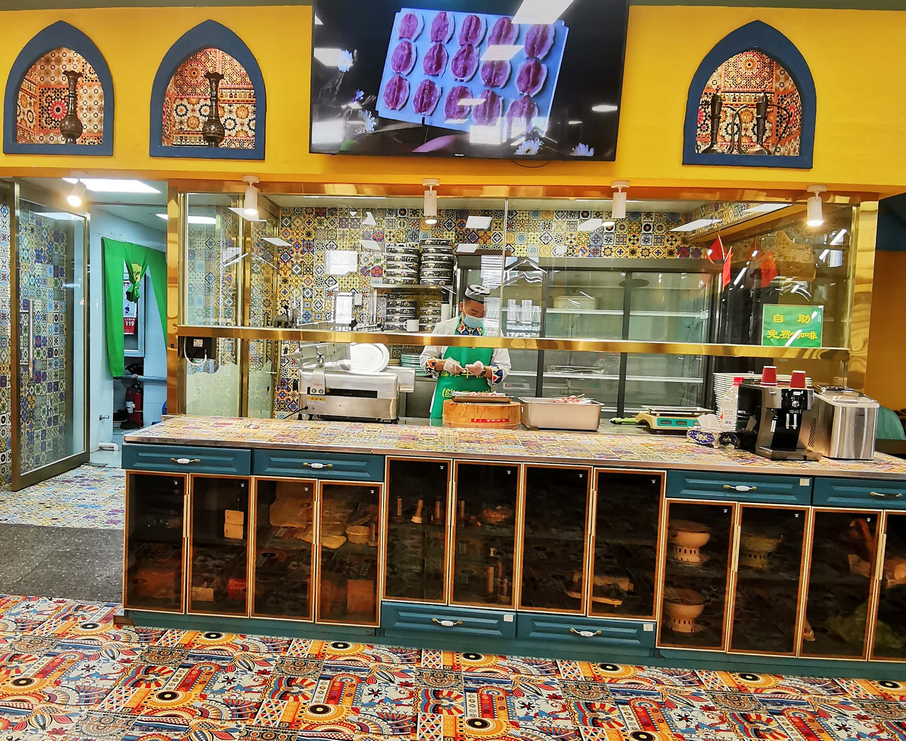 推开店门,浓郁的新疆风情瞬间包裹全身。大堂与包间设计各有韵味,既有简洁明快,透着家常温馨;又有繁复细腻,雕刻着新疆特色纹样;耳畔循环的维吾尔族民歌,搭配随处可见的民族元素装饰,让人恍若穿越千里,置身于伊犁河畔的风情小店。
