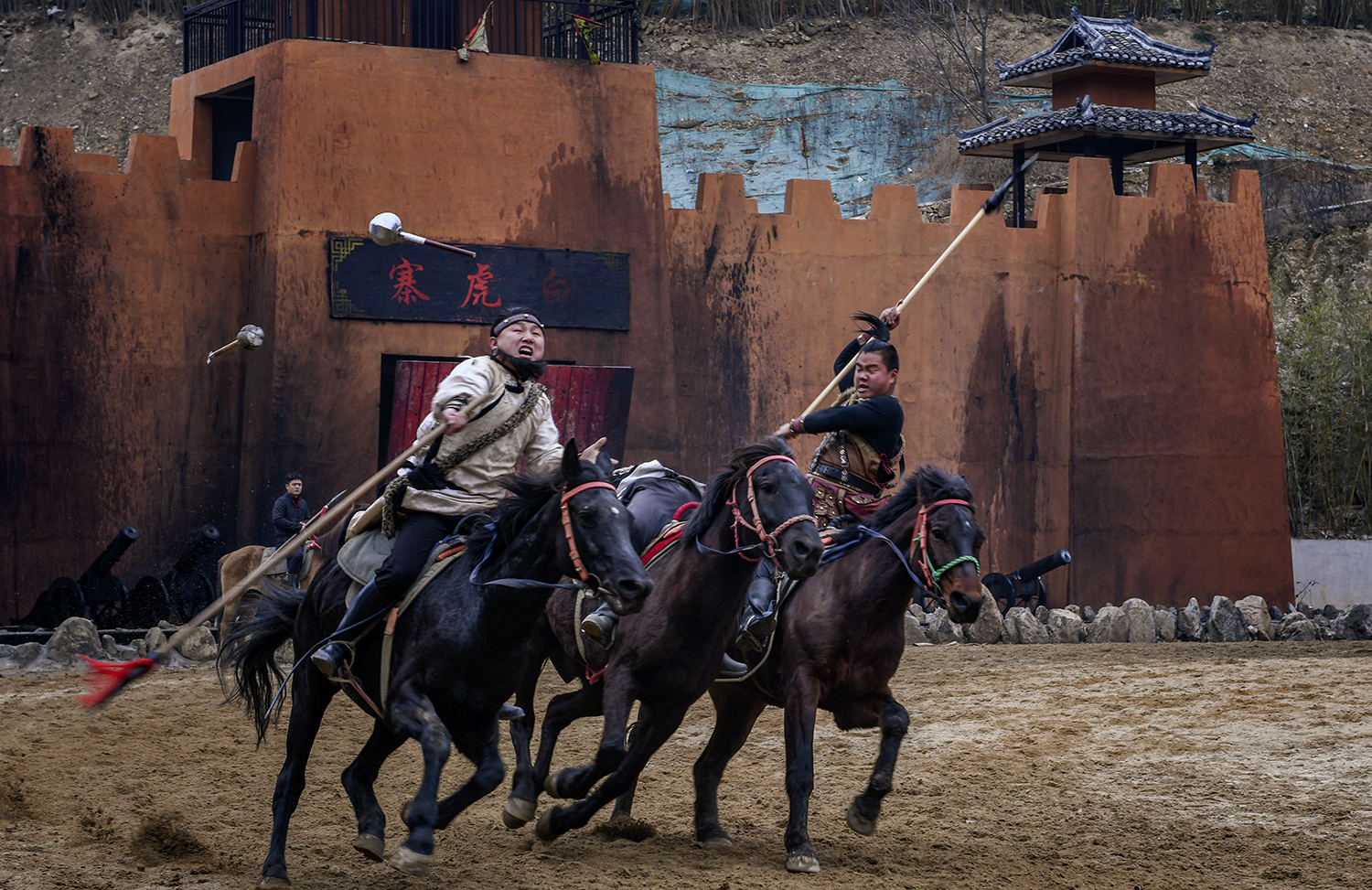 这群悍匪的马上功夫十分了得,急速杀来,土家山寨有些猝不及防,村民四处逃散,老管家急忙组织寨中士兵仓促应战,不幸在这场战斗中阵亡。土匪们叫嚷着:交出田月娥,退出土司寨。