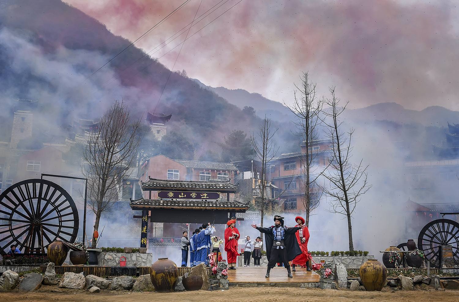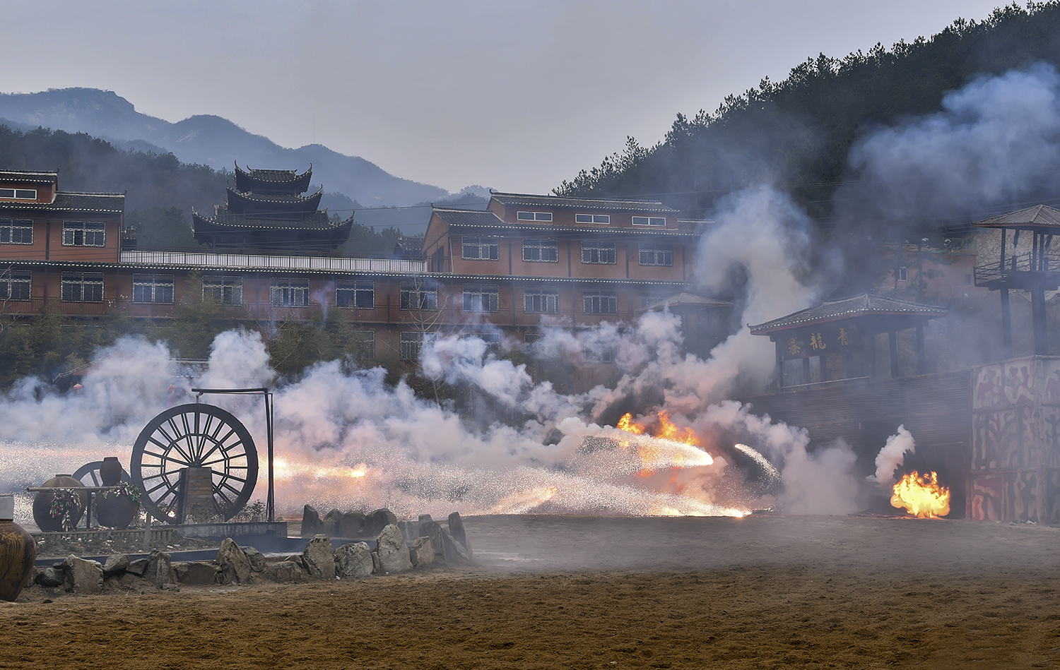 让我们随着这场《风云土司寨》实景剧,穿越时空,回到清末,看看那时发生在这的故事......锦里沟田璋土司王府背倚青龙山,俯瞰赏月湖,是一处绝佳的风水宝地。田璋的小女田月娥到了婚嫁的年龄。这天封疆土司来做媒,想让光祖的公子和小姐田月娥结成秦晋之好,这事田璋也觉得甚好!能与光祖土司联姻,更利于土家兄弟的团结。