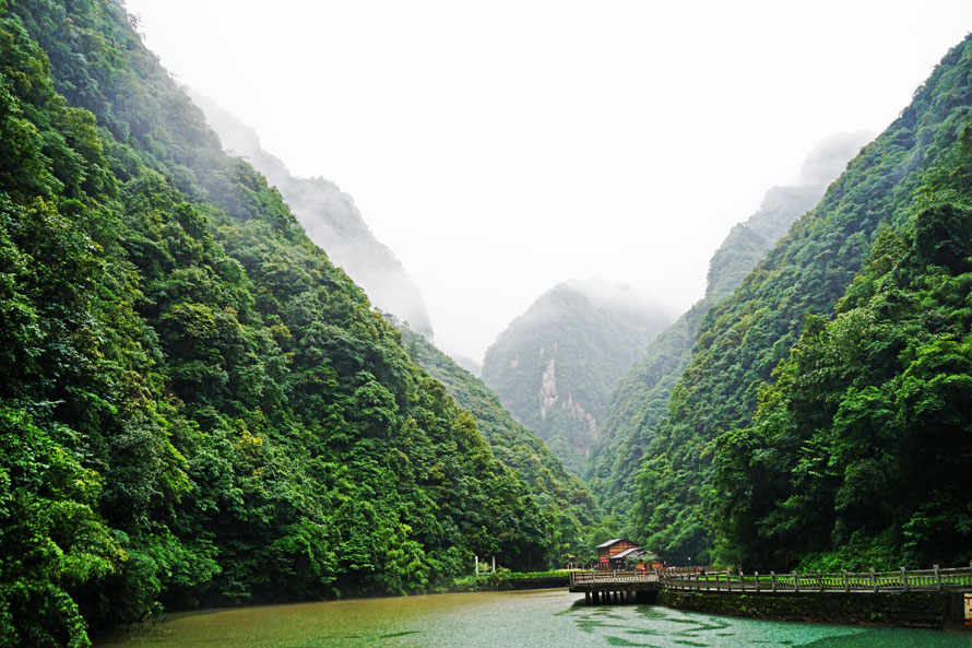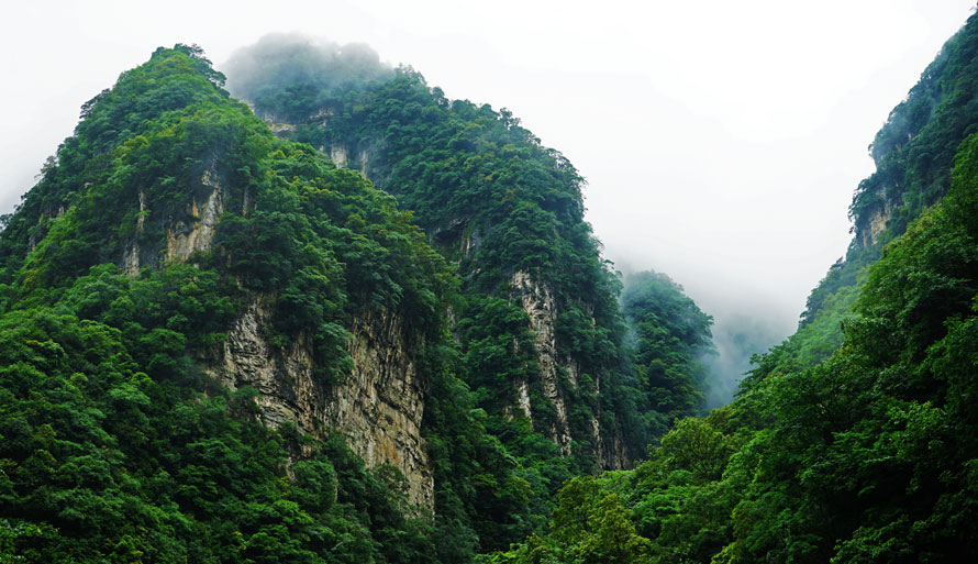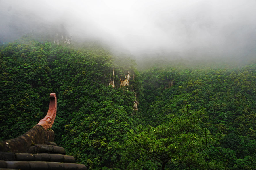 这里植被茂密,层峦连绵,山外的青山与云雾将这里描摹成天堂般画卷。