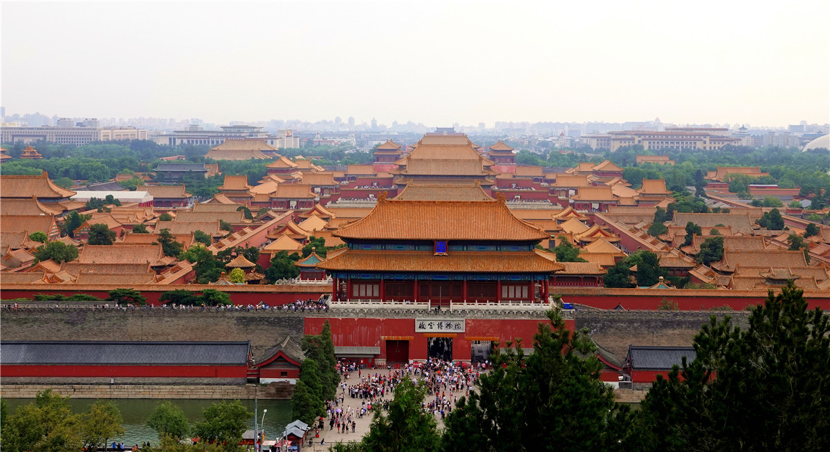 京城南北中轴线的中心故宫博物院是在明清两代皇宫紫禁城的基础上建立起来的。据说当年皇宫改为故宫博物院,第一次面向公众开放,京城的老少爷们儿蜂拥而至以先睹为快,北京市内万人空巷,交通为之堵塞。直到如今,无论中外宾客到北京旅游,故宫博物院都是首选的旅游景点。人们习惯按照南北中轴线的顺序,从天安门经过金水桥进入午门,由南向北至神武门走出博物院。在这座长方形的城池中,筒子河作为皇宫的护城河环绕四周,四角的角楼,景山公园制高点万春亭就成为人们拍摄故宫的最佳点位。