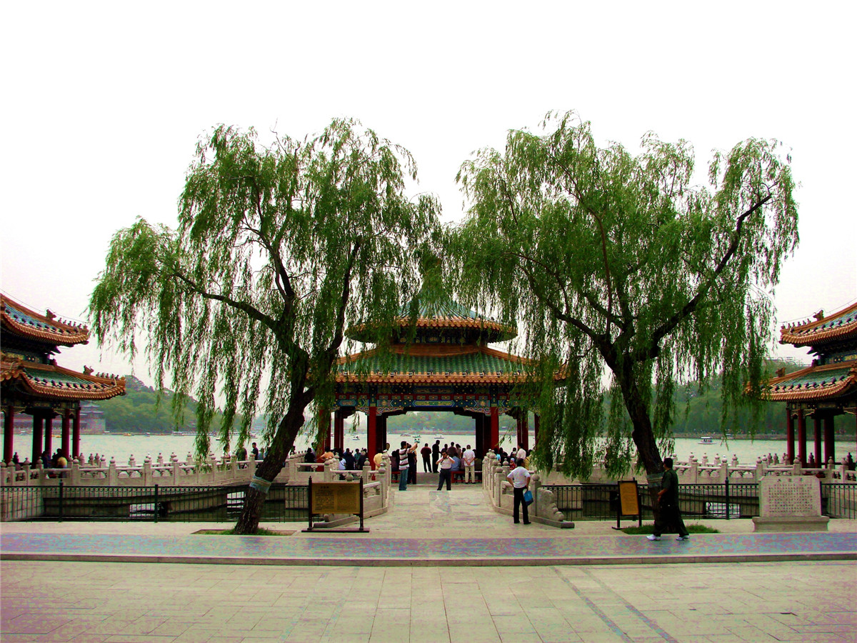 同天坛公园的祈年殿一样,北海公园的白塔也是京城地标性建筑。位于京城中轴线中心故宫的西北方、景山公园西面的北海公园,也是中国古代皇家园林。细细算来,从金灭辽后,修建园子至今已经有850多年的历史了。元朝时候,这里就建成了一个颇有气派的皇家御苑。园中的琼华岛改称"万寿山"(又称"万岁山")明清两代帝王曾先后对园子进行修复、建设,特别是乾隆年间,将江南园林的精华、文人写意、山水园林引进皇家宫苑,先后建成北海的静心斋、画舫斋、濠濮间等"园中之园"。晚清时候,慈禧太后用海军经费重修"三海"建筑,在西岸和北岸沿湖铺设了中国第一条铁路,在静心斋前修建小火车站,供慈禧乘小火车来园游宴。一直到1925年,这座皇家御苑才正式对公众开放,成为公园。