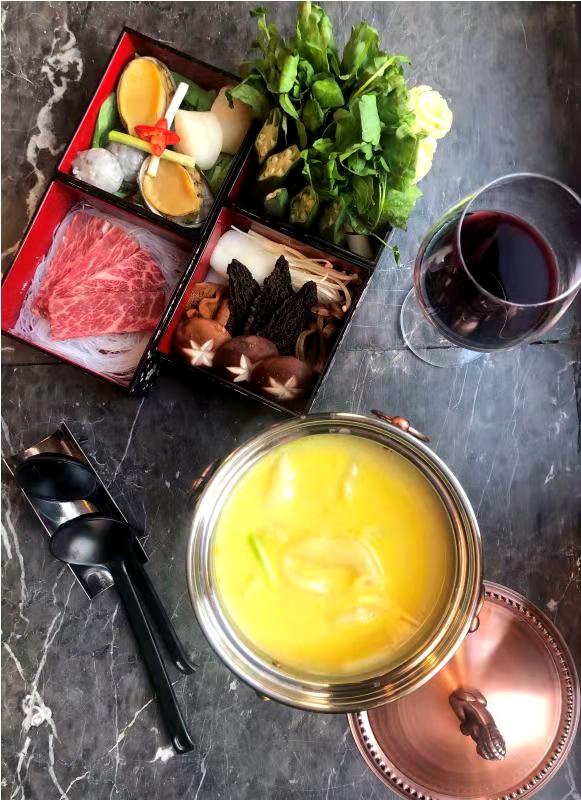 黑松露松茸和牛火锅集合了美食“三大天王”之精华,黑松露、鱼子酱、鹅肝酱再加上清远鸡汤做锅底,和牛、鲍鱼、各式珍贵菌类依次下锅开涮。这山珍海味加上独特的中国式吃法,让到京城旅游的欧洲老外趋之若鹜,