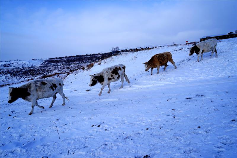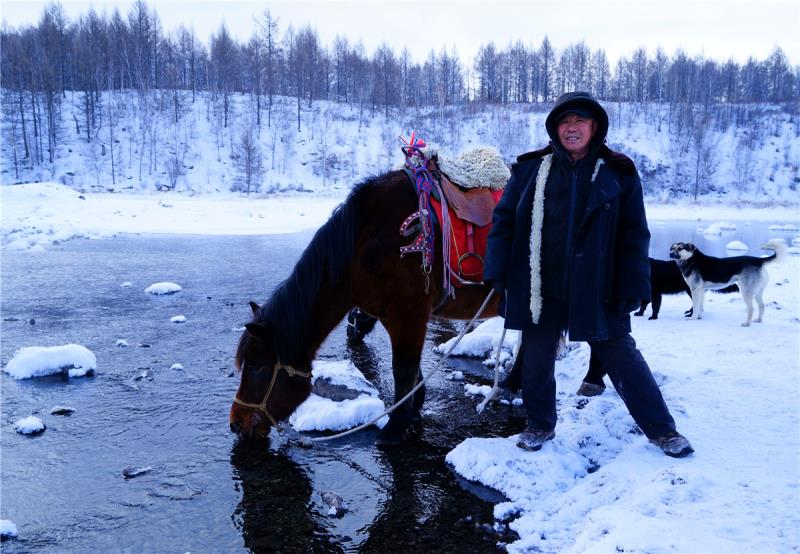 阿尔山国家公园的不冻河是哈拉哈河的一段河流,这处河段严冬从不封冻。河床上蒸腾着袅袅的水气,蜿蜒的河道,水中圆润的雪堆,冉冉的日出以及成群到此饮水的牛和马,吸引了摄影人的目光。于是乎这里也就成为网红打卡地,成为摄影人的光影世界。一群黄牛依次从山坡走向河床,我举着相机疾速跑过去,想着拍张牛的正面照,突然井然有序的黄牛队伍中一头肥胖的黄牛调转身子,只奔我而来,望着牛眼透露出的凶光,胆小的我落荒而逃……还好,黄牛看到我逃跑了,复又迈着不紧不慢的步子走下山坡。难道我的举动对牛群构成了威胁?望着远去的牛群,我扪心自问。不一会儿,不冻河畔热闹起来,山林中的马群、牛群汇聚于此,等待日出的摄影人不失时机地按动快门……