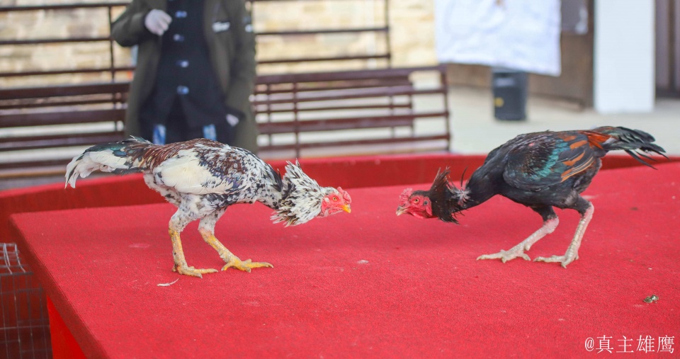 据指挥的斗鸡大爷所说,这里所用的斗鸡,都是从越南进口的。确实,参与比赛的两只斗鸡都是体型魁梧、体质健壮结实,翼羽拍打也显得很有力。