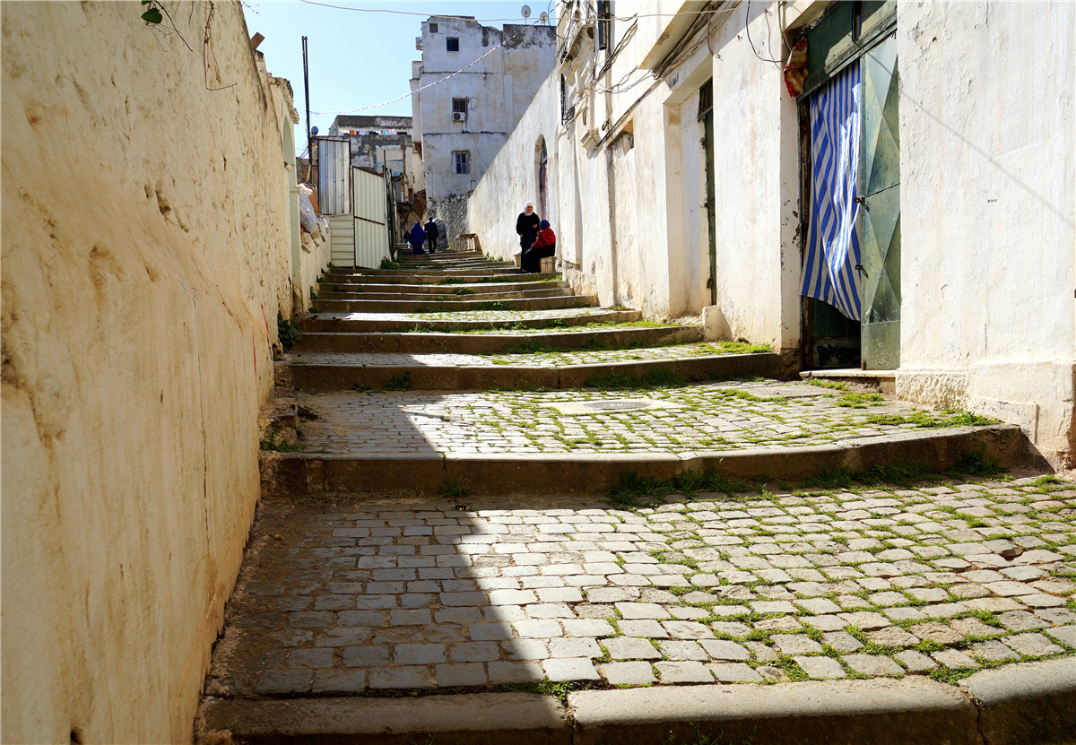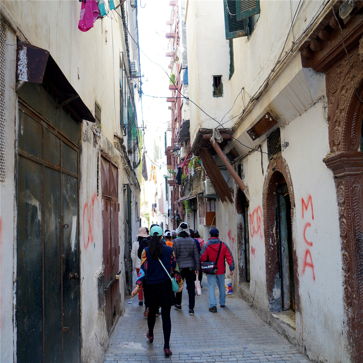 悠长的胡同,纵横交错,犹如走进迷宫。据说当年阿尔及利亚人民谋求民族解放,曾与法国殖民军在这里展开巷战,让法国人很是头疼。也许是我们说话的声音惊动了院子里的人,一位小姑娘好奇地拉开院门,一双明亮的大眼睛看着我们。转瞬间我们就成为了好朋友,走出好远,还能看到小姑娘挥动的小手。一座经历漫长时光的古城,一座彰显着民族解放运动精神的古城,一座安祥、悠闲的古城散发着独特的魅力。