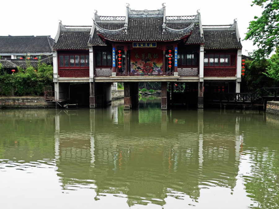 旧时的西塘,人们以舟代步,在戏台旁看戏多是坐在小舟内,一边吃小吃,一边欣赏戏台上的人唱曲,如今,时过境迁,戏台已是一种落寞的存在,它孤独地伫立在一片水之央,成为来客的景致。