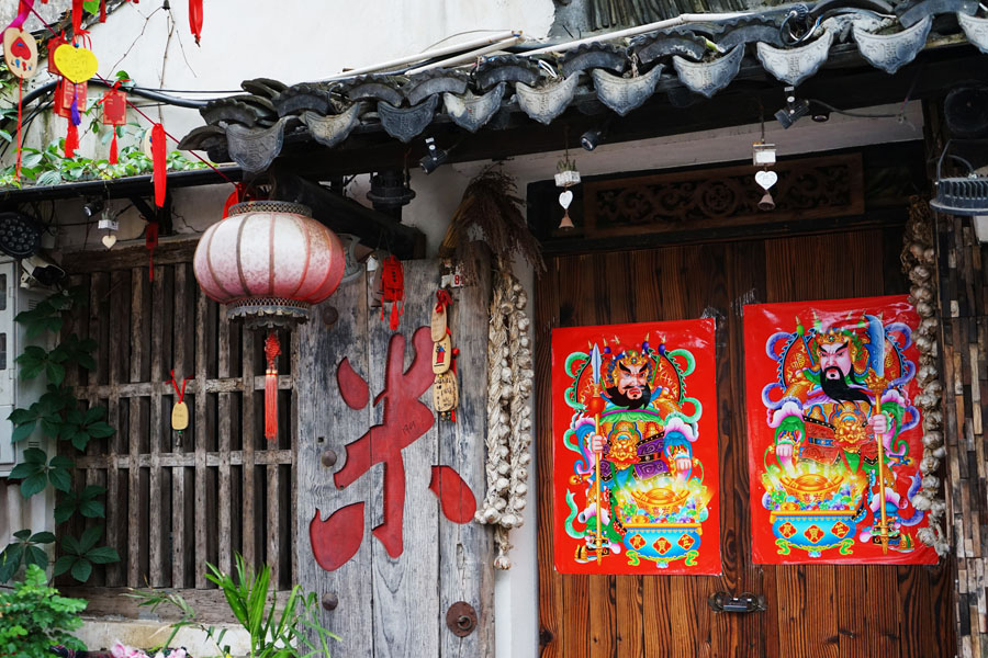 似乎每一个来西塘古镇行走的人,都会被这里原始的生活所感染,在一条巷弄里,窗台被盛放的鲜花覆盖,一户一家的门楣上张贴着的年画,向来客讲述着这里的恬淡生活,也讲述着这里的人事变换。