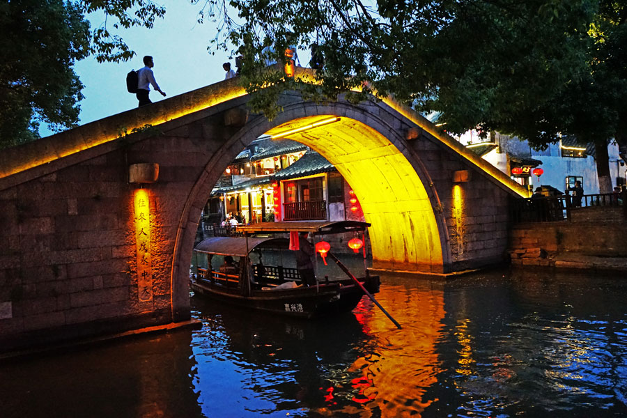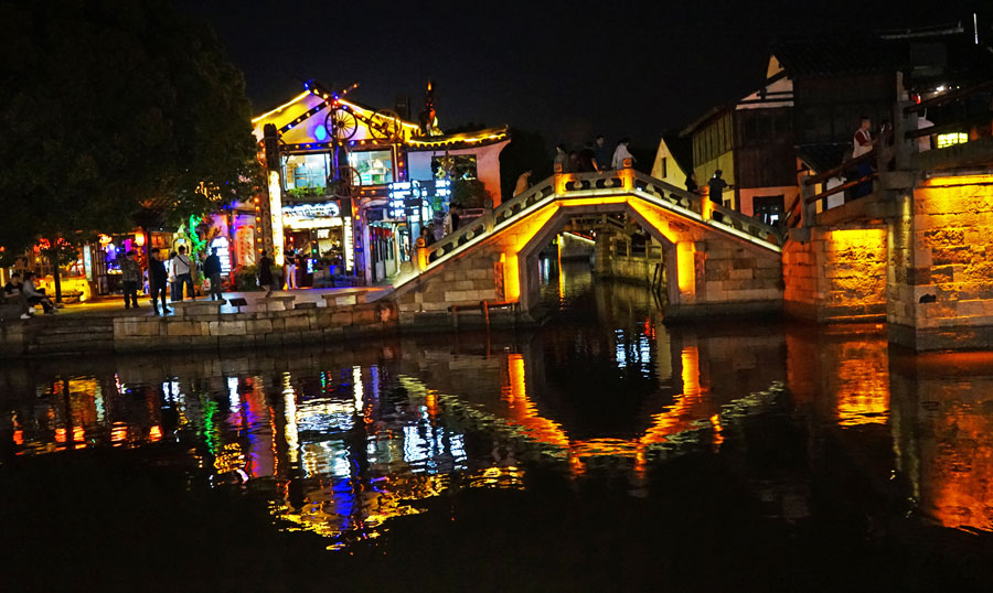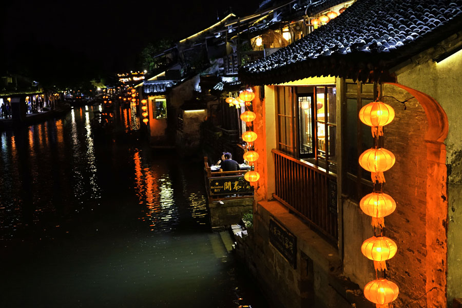 夜游西塘是不少人的选择,在酒吧聚集地段,人群与街区在古典和现代中相互交错、交融。