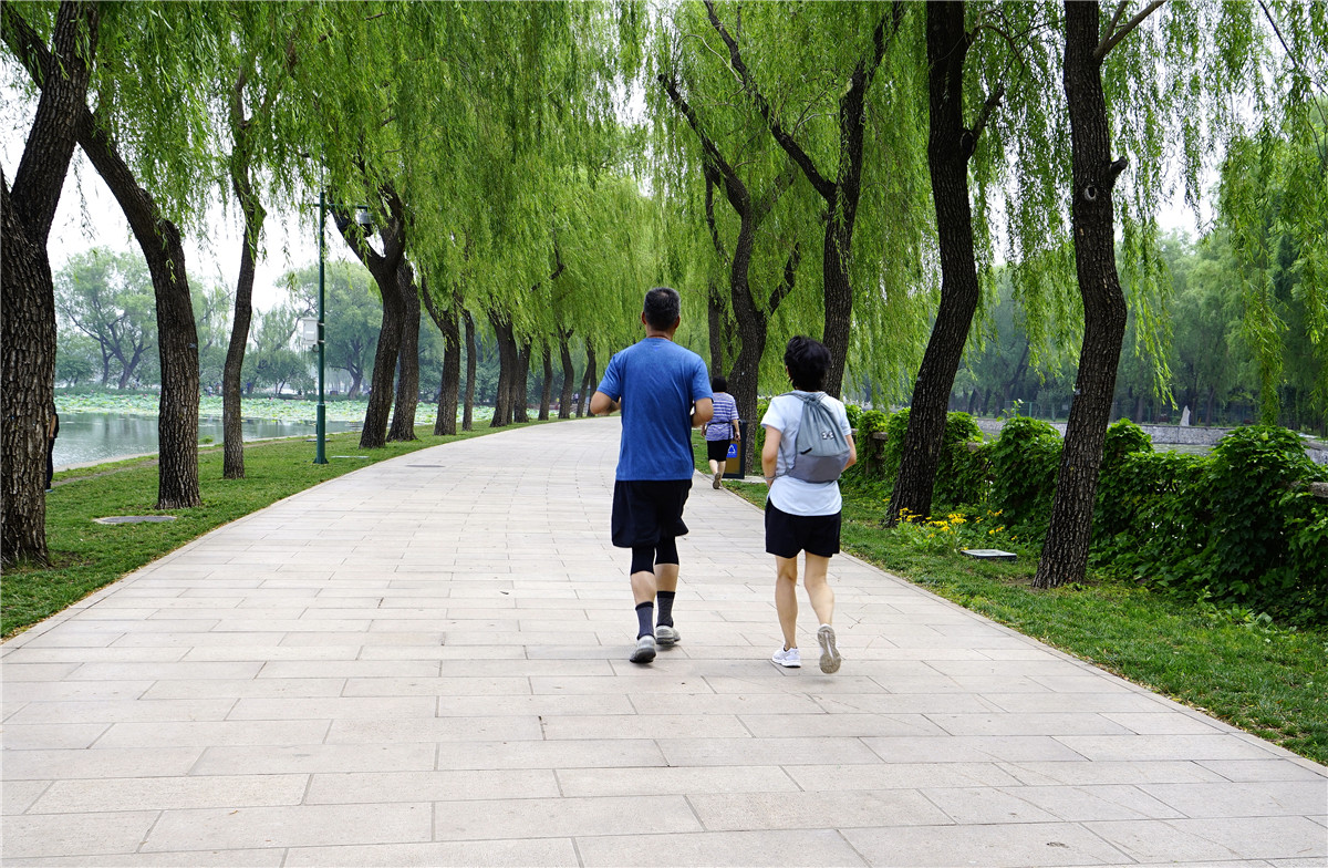 沿着西堤自北向南随后向西走了一个环形。不少游人在这条石板路上健步行走,也有不少摄影人走走停停,寻觅着湖面上、荷塘里以及路上的精彩瞬间。