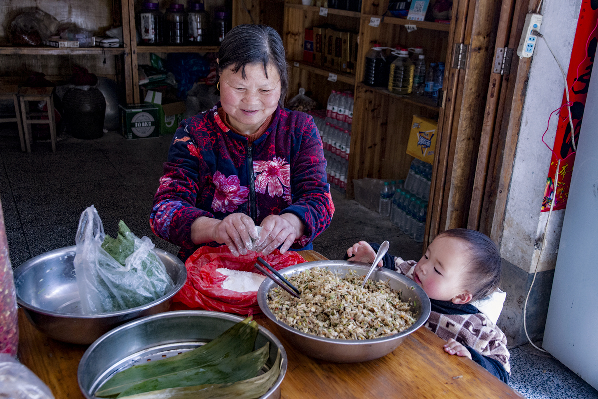 一进源头古村,就看到人家正在制作这道清明美食,便与她热聊了一番。因忙着游玩拍照,没能等到她包好蒸熟,品个滋味,有点遗憾。