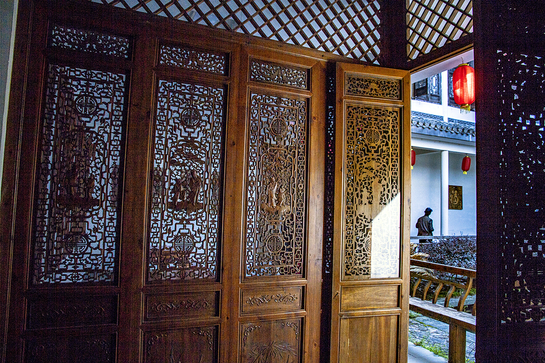 周润发住过的房屋,对这几扇雕花门窗印象深刻,传统的徽派建筑,建筑设计讲究风水。内部摆设简洁,虽是精致,却也并无特别之处。