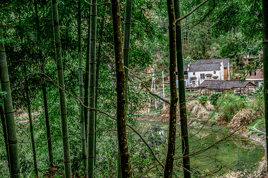 源头古村属小家碧玉型,村子不大,房舍也不多,但麻雀虽小五脏俱全,周围的山水是极好的,四面青山环抱,古树参天,一条清澈的溪流淙淙穿村而过,小潭,石桥,茶亭,青苔拥簇,古意十足。人为的修葺加上时光的沉淀,赋与了古村深厚的文化内涵,不经意间的从几扇雕花窗格,几株修竹,几级被踩踏的油滑的石阶上散发出来,让你分明的感觉到这个村子是有故事的。
