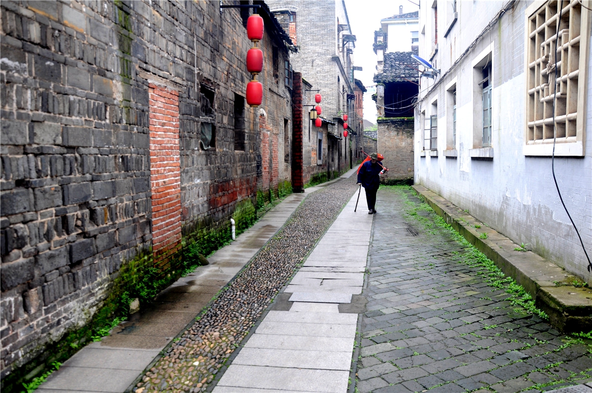 巷子不过200多米长。鹅卵石铺路,幽深而又古朴。两旁的店铺、作坊、宾馆、钱庄、衙署、民居五花八门,真的是一个小社会的缩影。最有特色的当属它的建筑风格。既有赣南客家、赣中天井式建筑,又有徽州建筑,甚至还有洋式建筑流派。马头墙、黑棕色折叠门板、窗前雕花,让我倍感亲切,西洋楼也让我感到些许的诧异。当地居民告诉我们,这里的建筑有宋、明、清不同朝代的历史印记。200多米的巷子带你走过了千年的历史,让你欣赏了中国古建筑艺术不同年代的作品。
