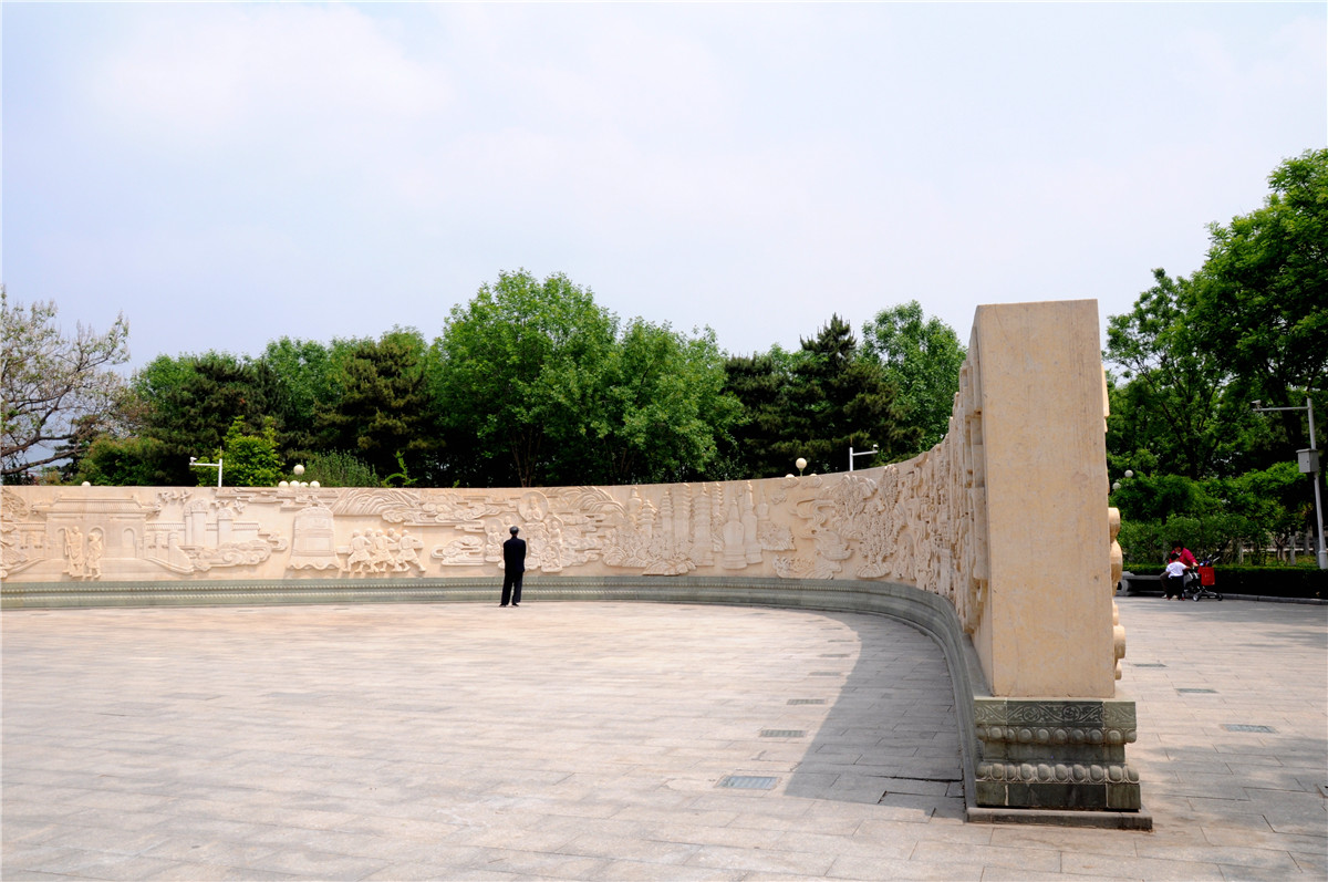 园内生动、古朴的门头沟历史文化长廊,以浮雕艺术作品的形式,向游人展示了门头沟区不同时期的历史画卷:古老的东胡林人生活场景、牛角岭关城、圈门过街楼、马帮商队、爨底下村、古长城烽火台、潭柘寺、戒台寺寺庙、妙峰山、灵山、抗日战争场景,集中体现了古道古村落文化、历史民俗文化、宗教寺庙文化、京西红色历史文化以及煤业矿业文化等。