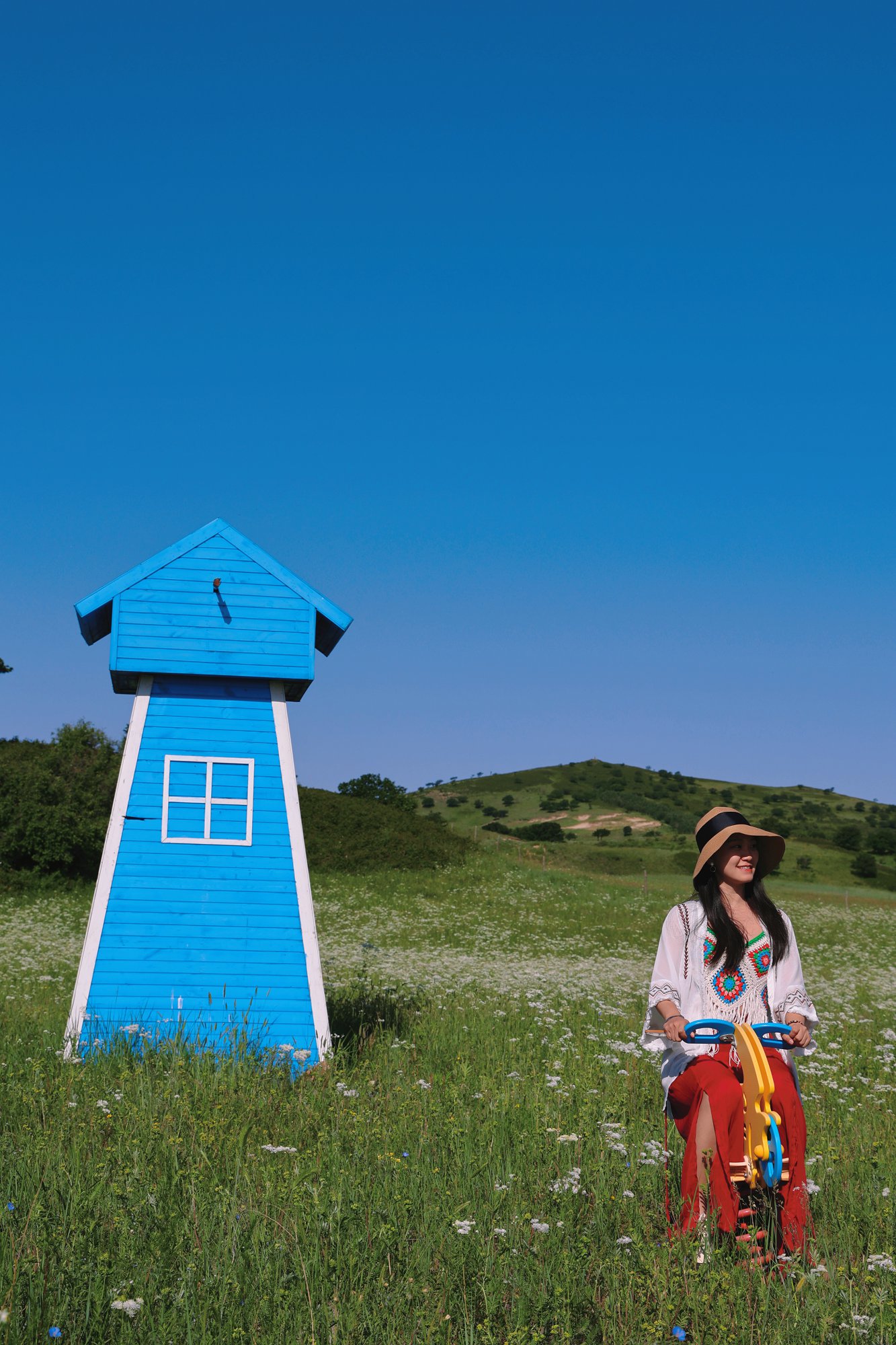 奶牛牧场,在这里可以自费品尝这里的鲜牛奶,也可以选购自制奶酪品。而边上的小游乐场很受女孩子们的喜欢,都是常见的物件儿,在草原这大环境里,显得那么的醒目,也有了玩耍拍照的动力。
