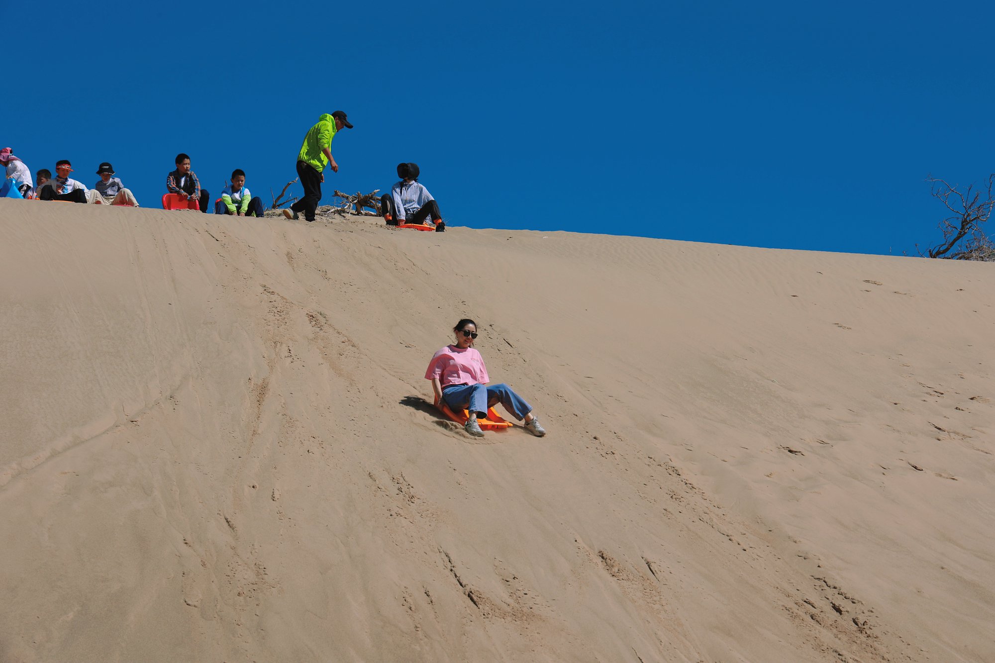 其实,滑沙、滑草才是孩子们的最爱,尽情享受着从高处快速滑下的乐趣。而大人们,也被这简单的快乐带动,不由得就与他们玩到了一起。