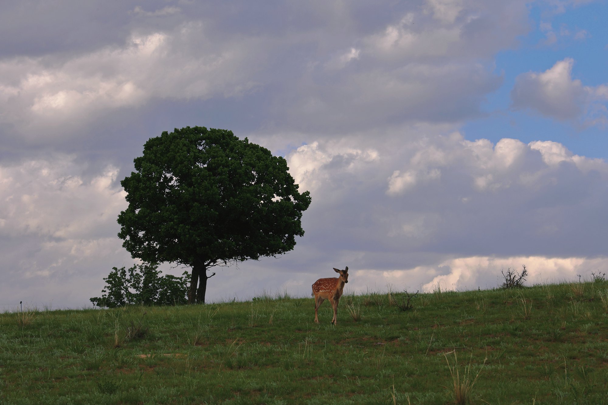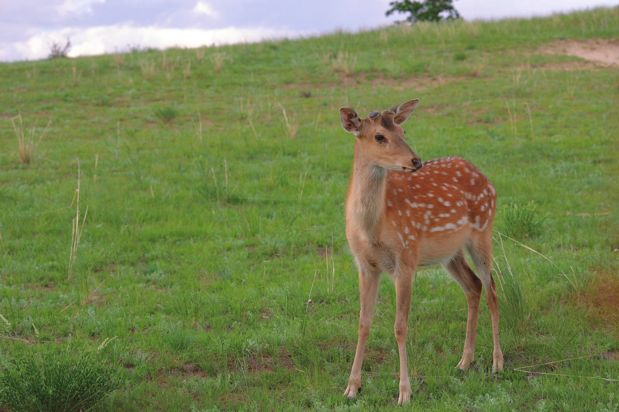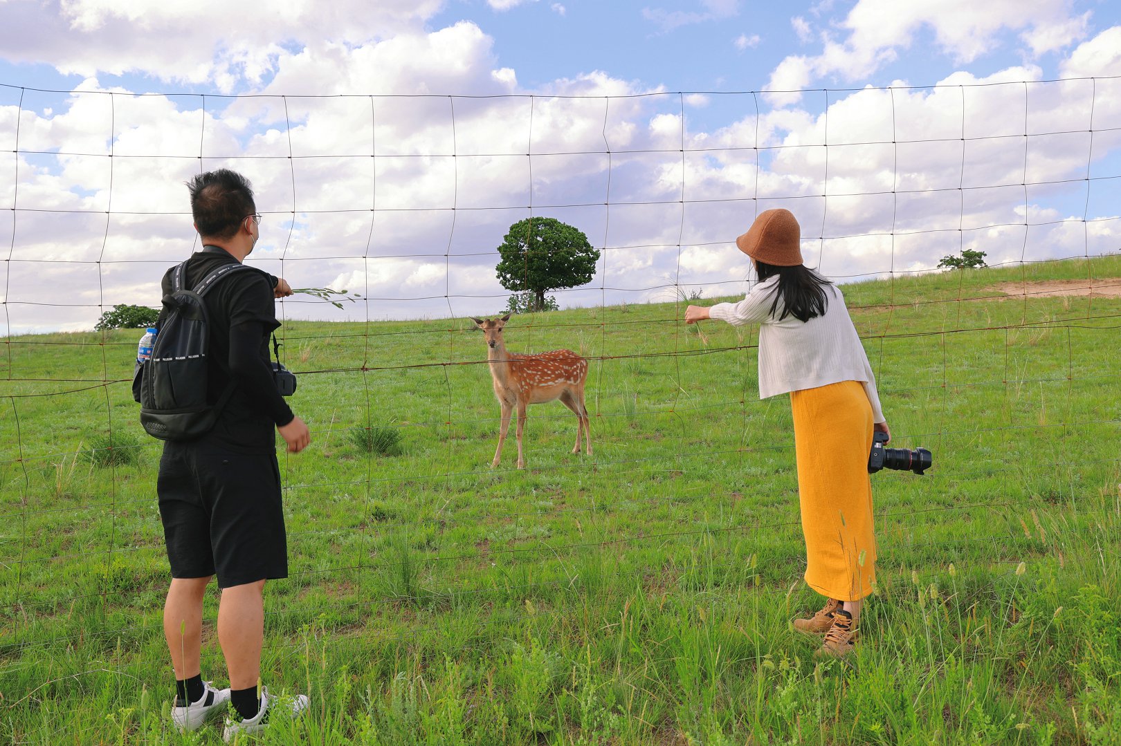 一只山坡上独行的小鹿,被同行女孩一声声“小鹿啊~小鹿啊~”的召唤中,缓缓走下山坡,慢慢靠近铁丝网。要不是怕惊吓走小鹿,可真想去伸手抚摸下它。