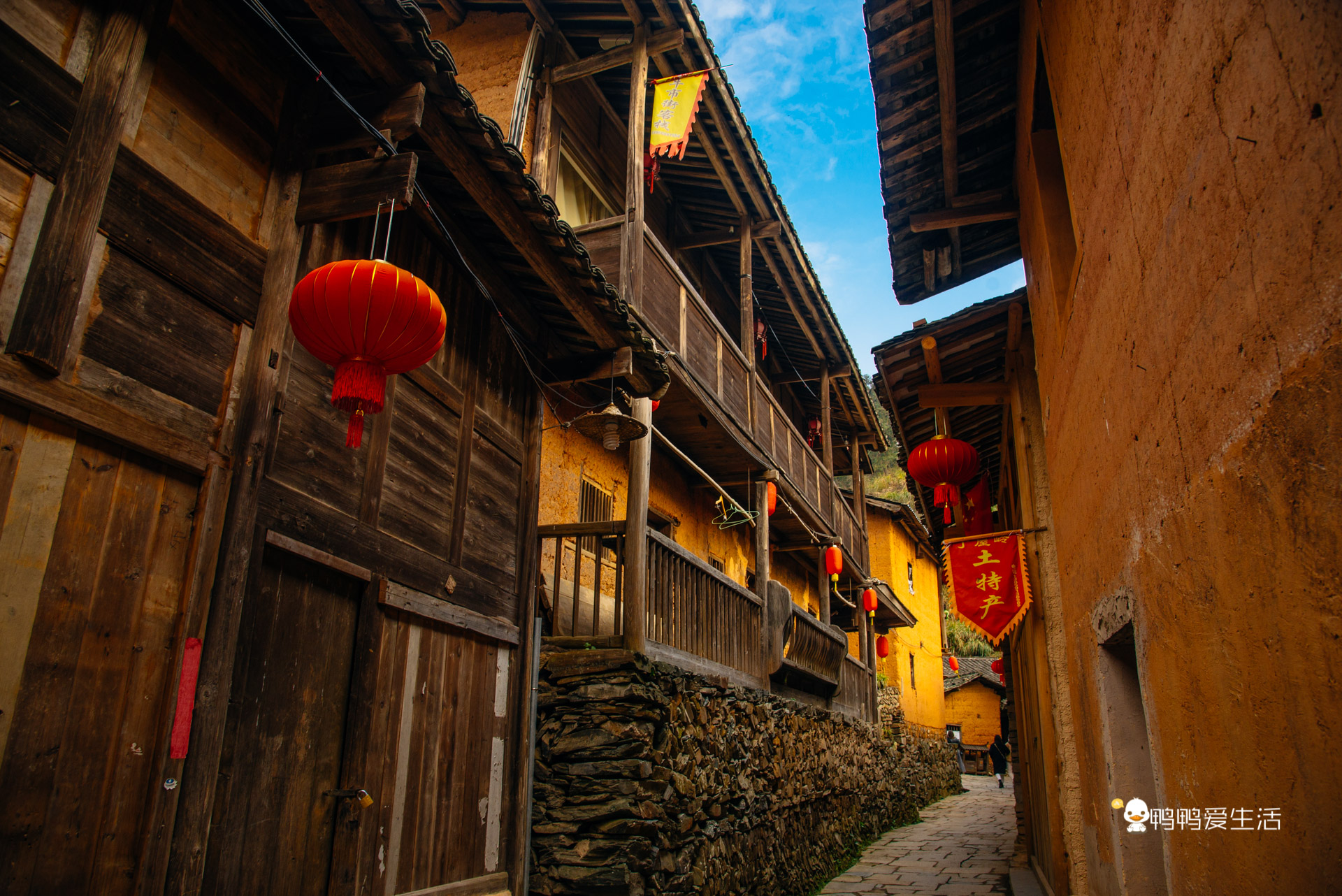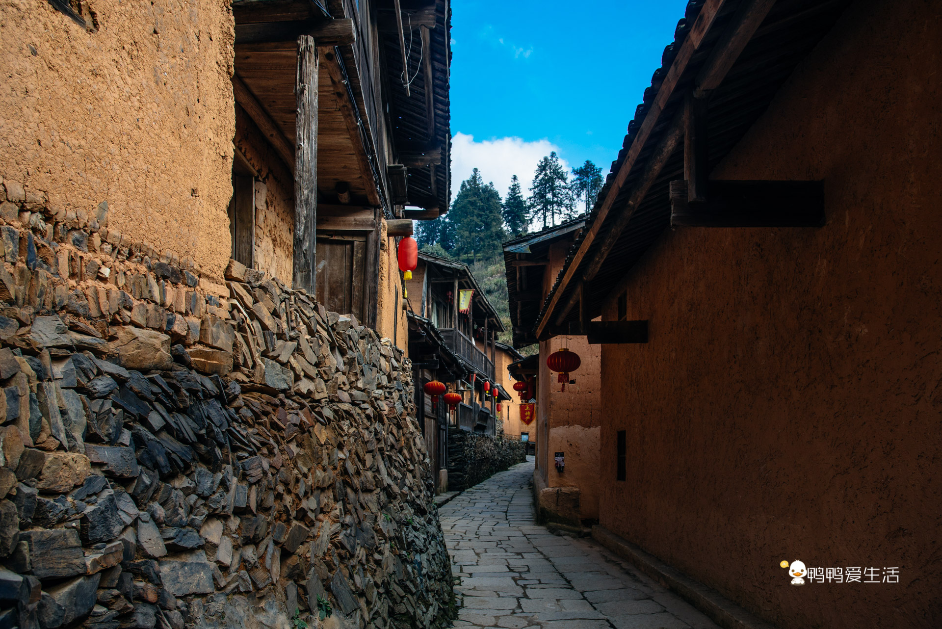 从寨门走到村民聚集的牛市街大概要10分钟,一路看到零散的房屋依山势而建,黄泥墙、黑灰瓦、木房子、石台阶,极具古朴的韵味。