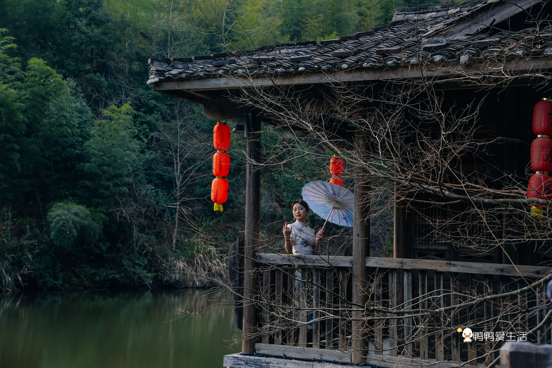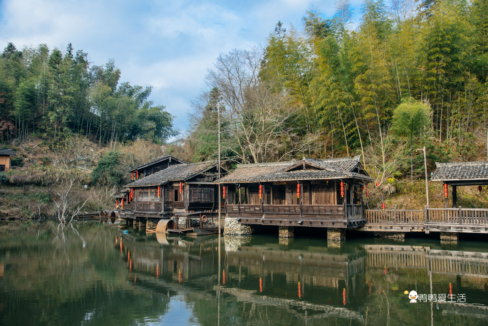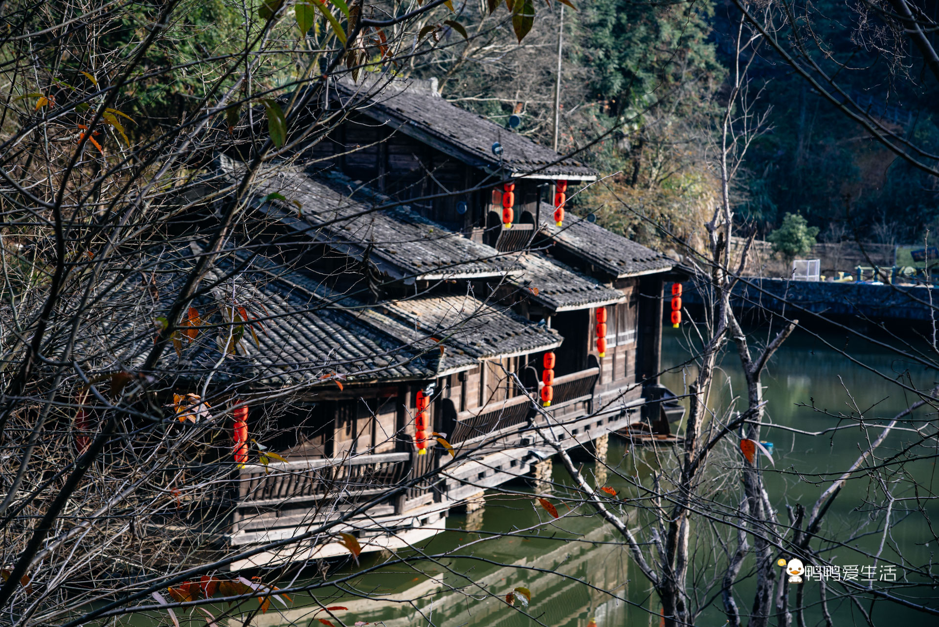 在离牛市街入口不远处,有一处山房水寨,一汪碧潭边上的吊脚楼群,甚至比西江千户苗寨更有风情,这里也是拍汉服古装的好地方。
