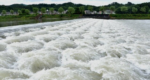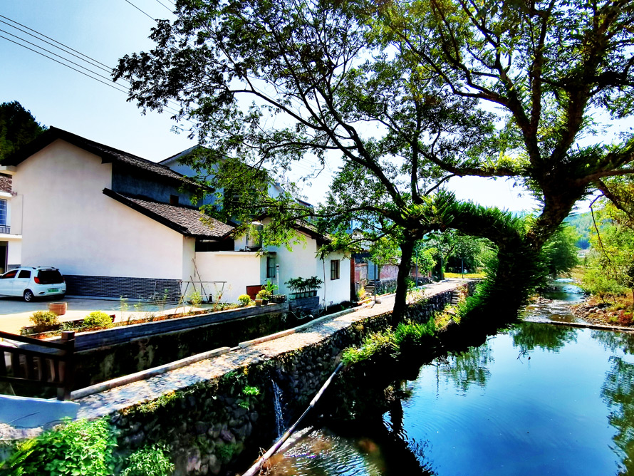 站在小溪河岸边,望向“鱼鳞坝”,错落有致的“鱼鳞片”分布在河坝上,清澈的河水漫过“鳞片”,带来“唰唰”的流水声,波光粼粼的水面映出蓝天和白云——好一幅“世外原乡”美景图。