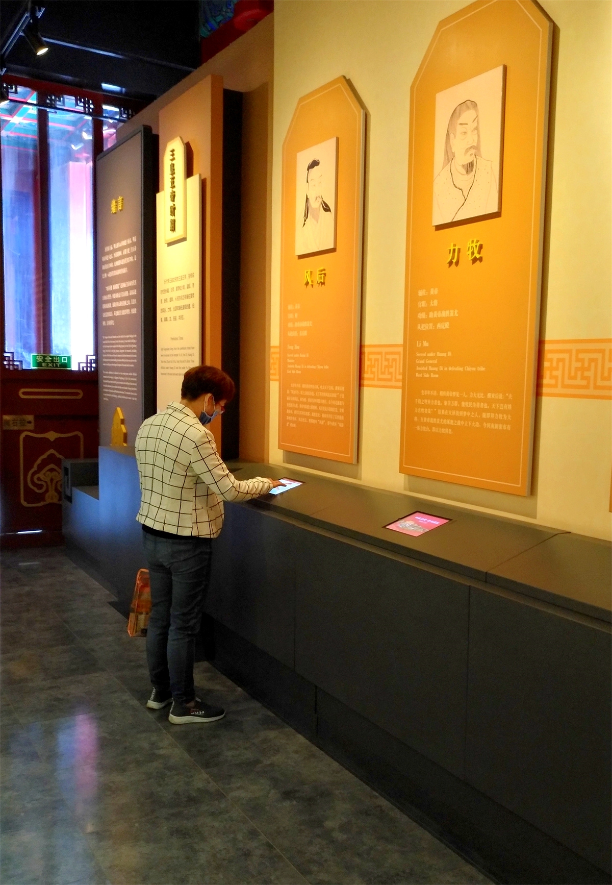 在每一位不同历史时期涌现出来的名臣展板下方有一个长方形的显示屏,你只需触摸一下,就会有详细的简介,方便你快捷具体地了解感兴趣的历史人物。