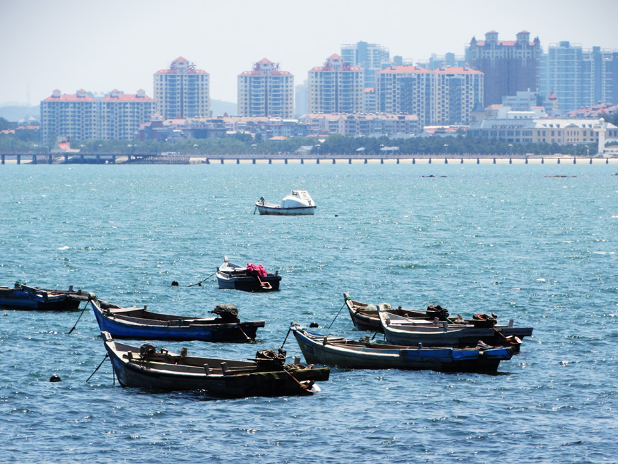 漫步在海岸线上,海面宽内海面宽阔,风平浪静。岛上丘陵起伏,草木葱茏,山光海色,秀丽如画,在小岛的一侧,群礁嶙峋,惊涛拍岸;东端碧水金沙,是优良的海水浴场;西端水深浪小,成天然良港。透过观澜亭明丽的窗口,向四周眺望,只见海天一色,浑然天成,苍茫的水面上渔帆点点,千舟竞发,无比壮观。