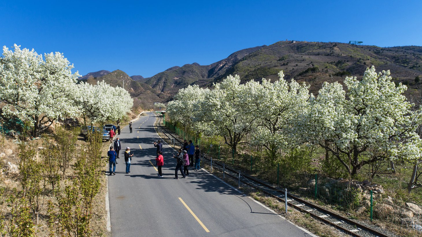 “占断天下白,压尽人间花”,阅遍百花,数梨花最白。千万朵如雪的梨花,被微风吹舞,下起了花瓣舞,引来不少游人,拍照打卡。