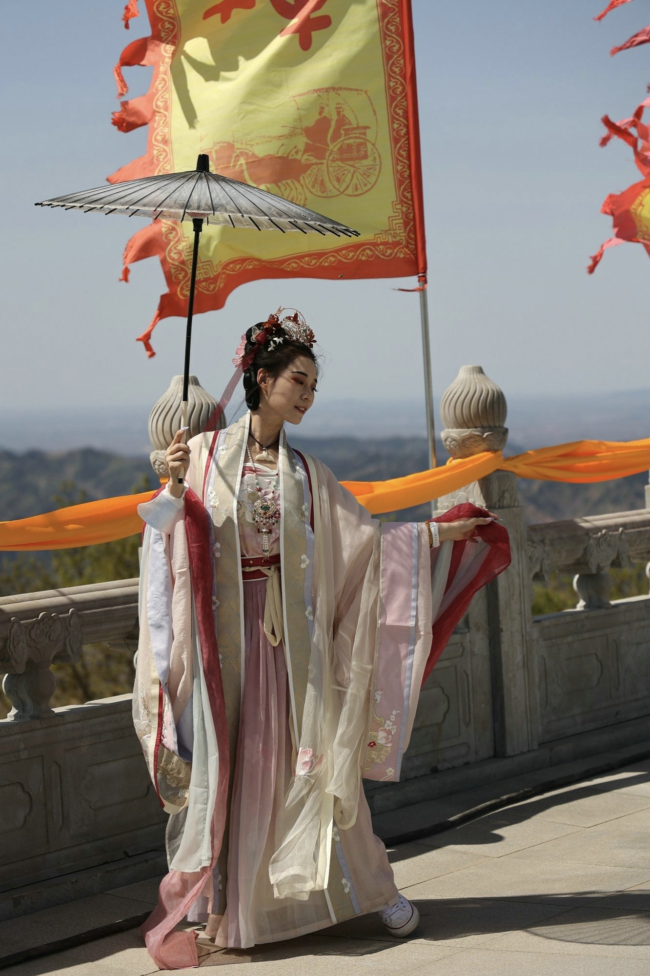听闻景区首届车神架中华礼乐汉服文化节正在轩辕圣象前隆重举行,自然不能错过一度盛会的机会,以最快的方式,乘坐缆车直达车神架最高峰天台山观礼!