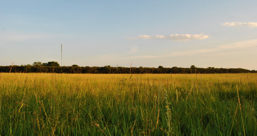 此刻,科尔沁草原安静祥和,各色各样的野花浴着阳光,在广阔的草原上争奇斗艳,偶尔,三两棵树突兀地出现在视野,一如画笔绘就的简笔,点缀了视觉。