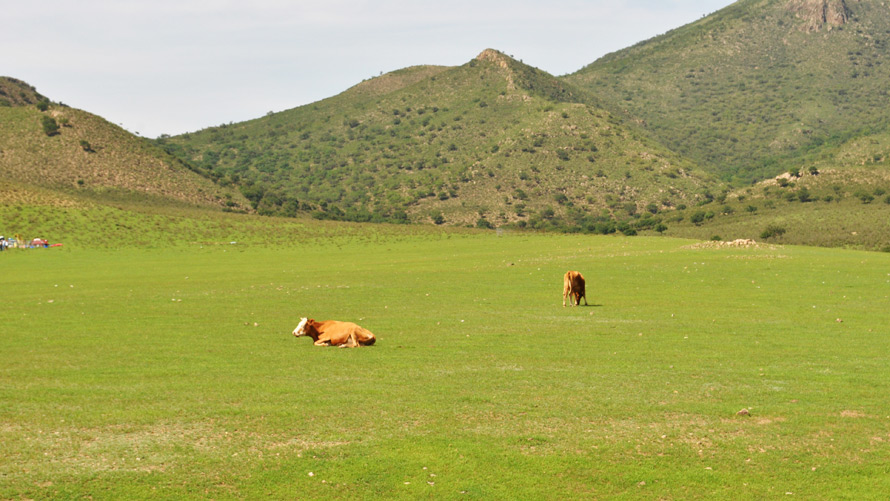 历史的风吹拂着今世的旷野,夏天的科尔沁草原绿草如茵,深呼吸一口,清新的草木味扑鼻而来,让人心旷神怡、如痴如醉。牛马和羊漫游在草原上,风吹草动,形成了一幅如诗如画的景象,正如北朝民歌“天苍苍,野茫茫,风吹草低见牛羊”。这片大地上处处都可以看见成百上千的羊群、马群和牛群,那些被碧绿的草原衬托得牛羊,在太阳下宛如绣在绿色缎面上的彩色图案。