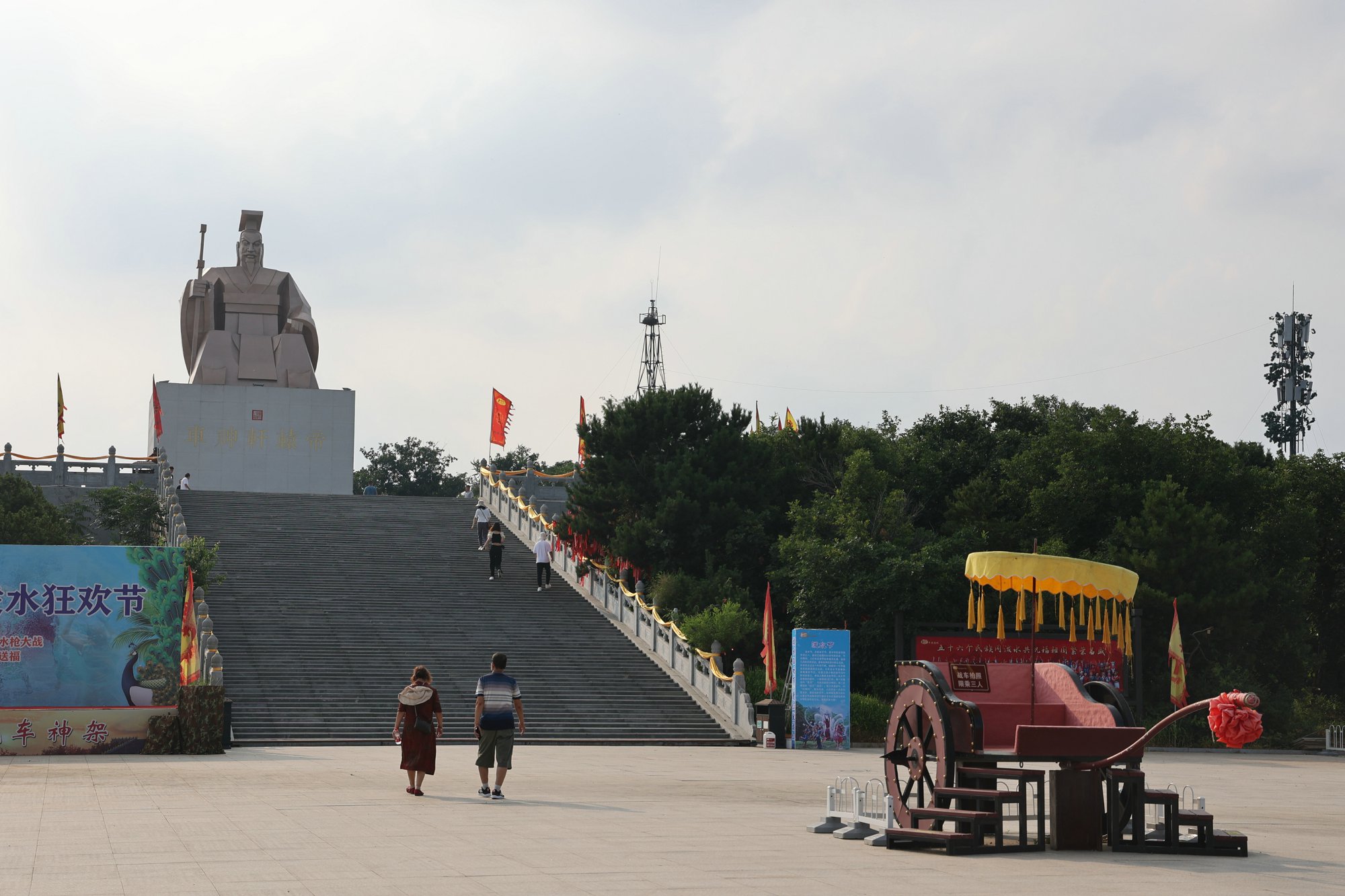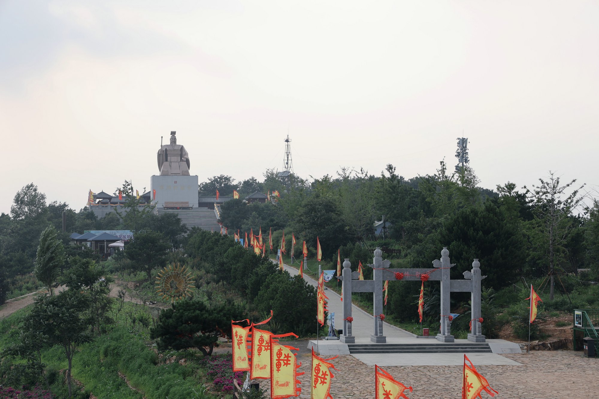 乘坐缆车到天台山顶,观瞻车神架景区标志性建筑-中华人文始祖轩辕黄帝巨制圣像,是来此必打卡地之一。