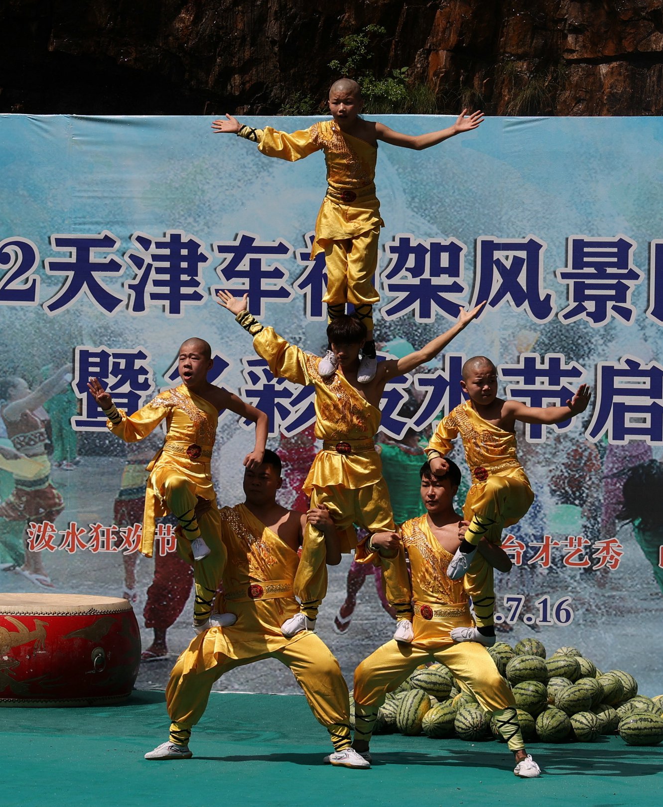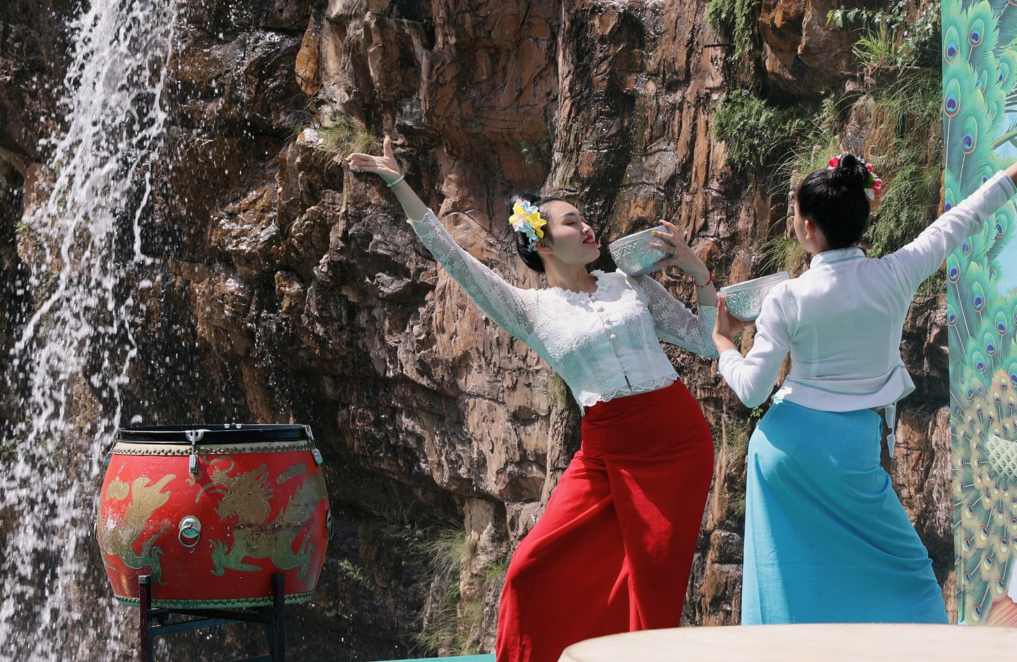 7.16日,赶上景区泼水节的开幕式,自然不会缺少了歌舞表演的助兴。“小和尚”的功夫+杂技表演,婀娜多姿的飞天舞,更有来自云南德宏孔雀之乡的非遗传承人,倾情上演的孔雀舞,每个节目都精彩纷呈。