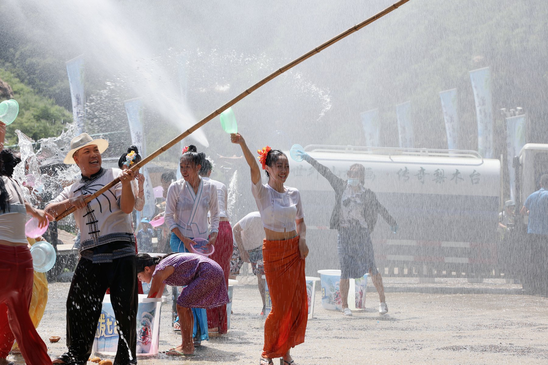 泼水节时间:7月16日至8月25日;每周六加派水车泼水!