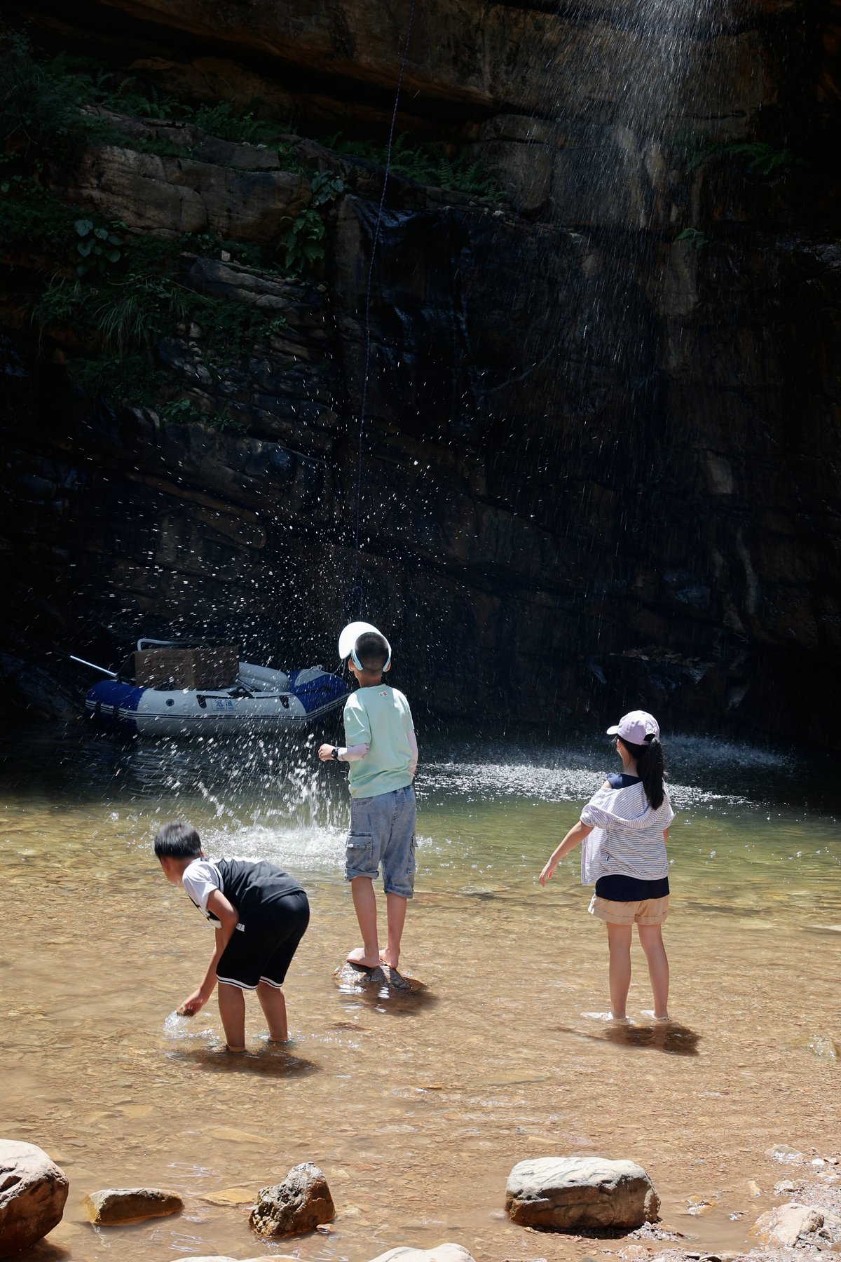 下山的路途,我们选择走峡谷这条线路,沿途可以玩玩玻璃旱滑&漂流水滑,也可在凤潭处尝试绳降。累了就在老龙潭、凤潭两处驻足休息,去感受下水的清凉吧。