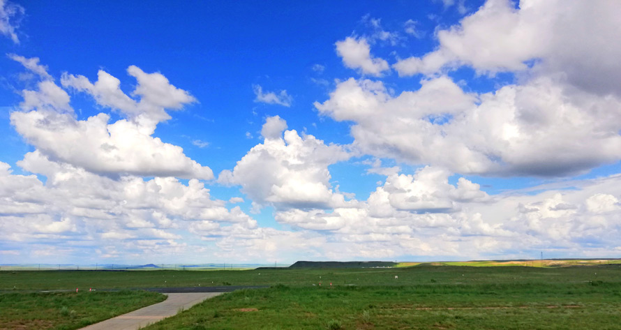 草原平顶山在锡林浩特市区南侧锡张公路20余公里处,位于贝力克牧场,是绵延近千公里的内蒙古火山带中阿巴嘎火山群的一部分。10余座山峰之上布满了火山喷发时留下的凝灰岩块,山顶无一例外都像桌面一般平整,远远望去仿佛是被刀齐齐地削出来的一样,规模宏大景观奇特。