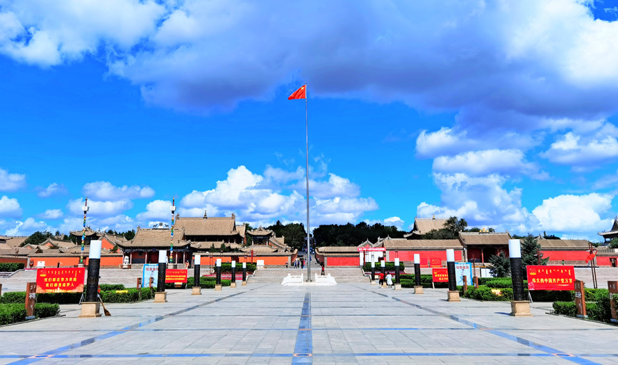 贝子庙前是一个大广场,占地面积1.2平方公里,建筑面积达2万平方米,庙宇整个建筑群有八座大殿,坐北朝南呈“一”字型排列,是一座凝聚着蒙、汉、藏多民族文化艺术的古建筑瑰宝。据说在极盛时期,寺庙有喇嘛1200余人,历史上为著名的佛教学府和内蒙古藏传佛教四大圣地之一。