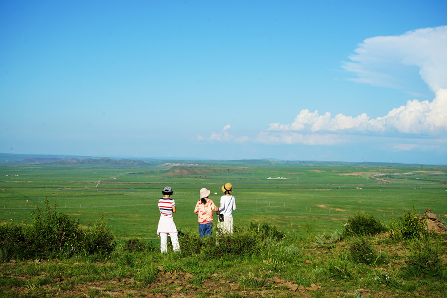 游览完贝子庙和额尔敦敖包公园,就可以出发去草原深处,领略天苍苍野茫茫的辽阔,当然不能盲目的出发,可以前往草原平顶山,公路蜿蜒自碧绿的毯子中间,沿途山丘连绵,碧草苍翠,偶尔会有一两个蒙古包矗立在路旁的草地上,远处牛羊成群在悠闲吃草,你可以随时停车,跑到草原深处,做出各种姿势拍一张到此一游照。