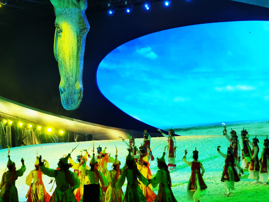 自驾游其实不必那么辛苦,把时间安排的的松散一些,更能让旅途留下长久的印记,游历完平顶山,也差不多夜幕降临了。找一处牧场民宿或者酒店,再次感受下草原的美食,与草原人民的热情,然后去马文化艺术厅看一场室内情景剧《蒙古马》。