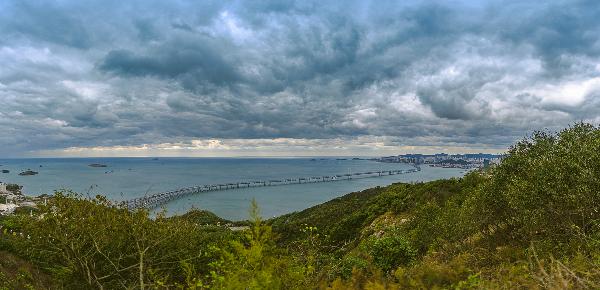 另一个免费且非常不错的景点就是大连的莲花山景区了,这里也是免费向公众开放的,而这里也是大连市区内的最高山了,莲花山海拔259.6米,在半山腰处可以欣赏到大连跨海大桥。而如果继续沿栈道向上行走,则可以登顶至最高峰,上面有一家不错的咖啡馆,当然价格在这样优质的景区里也算是良心的了,一杯咖啡二三十块钱,就可以坐在环形玻璃房的窗前欣赏整个大连市区的风景了!