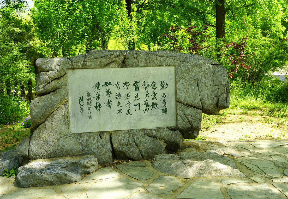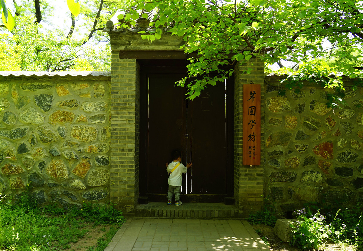 我们在院子四周徘徊,墙外一边,矗立着国内许多名家对《红楼梦》这部巨作的评价。后院的芹圃学坊是专门出售有关红楼梦的作品以及文创作品。院中的石板小路直通西山,也被人们称为雪芹小道。沿着这条小道可以从寿安山前的正白旗走到山后的白家瞳,途经关帝庙、卧佛寺、樱桃沟、三柱香等。而这段小路可以让人们参观清代引水石渠、碉楼、古井、碑林、寿安山石刻等历史遗迹与景点,有些景物据说就是《红楼梦》故事情节的原型,于是雪芹小道也就成为游人寻觅一代文豪足迹的必经之路……